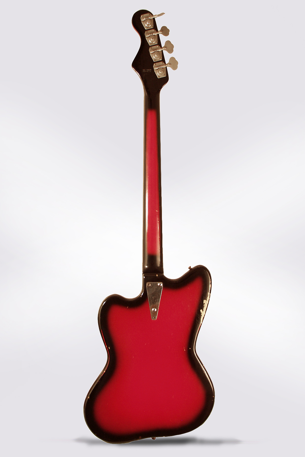 Silvertone Model 1443 Model Solid Body Electric Bass Guitar, made by Danelectro (1967), made in Neptune, NJ, sunburst lacquer finish, hardwood body, poplar neck with rosewood fingerboard.
