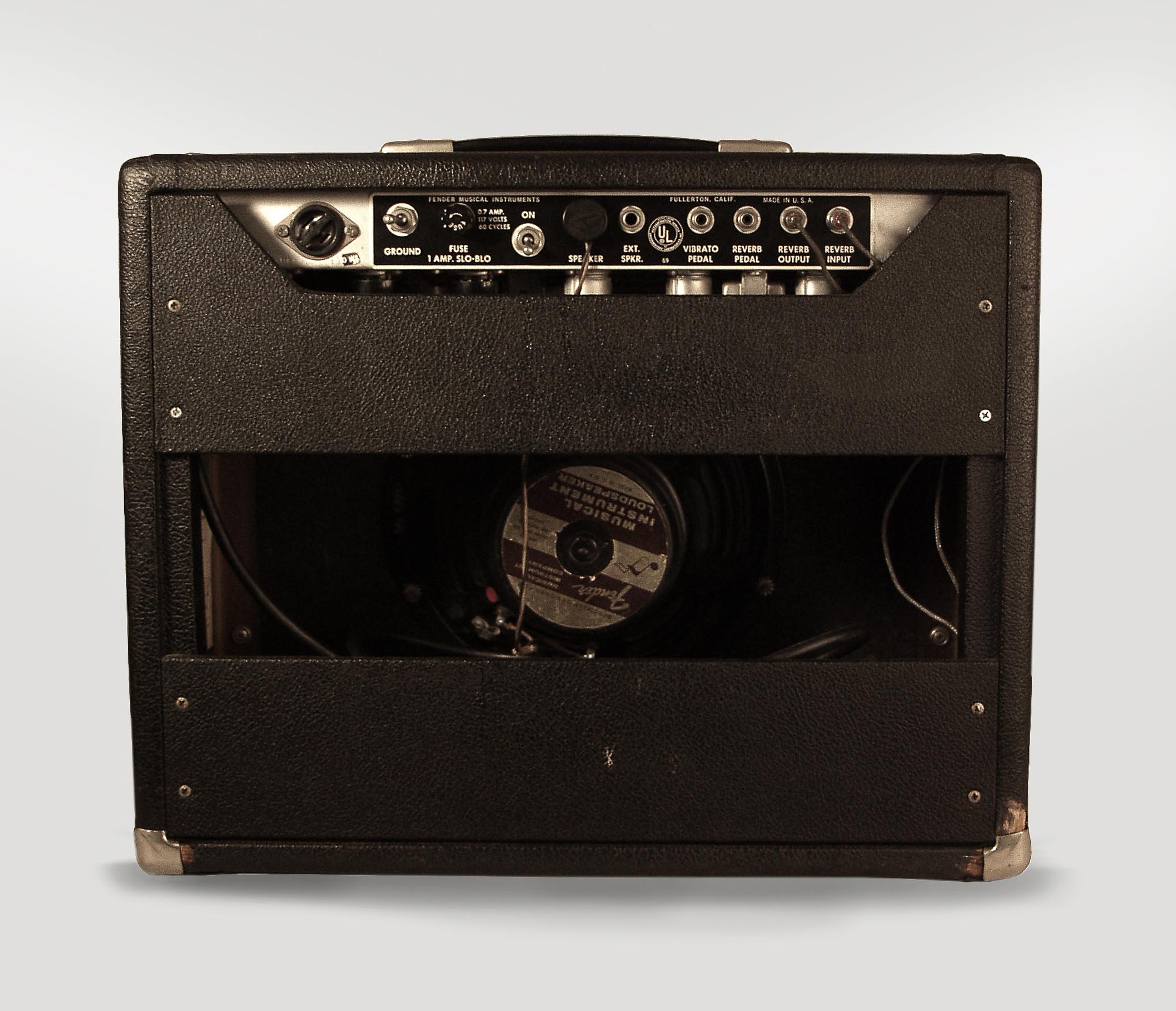 This is a very clean blackface Princeton Reverb, a mostly original amp with just a replaced reverb tank, added 3-prong cord, and a few more recent tubes. There is one tear to the Tolex on the bottom rear corner, but for the most part it is intact with a few small dings and dents. Sounds just as it should; a lovely example of our single most popular amplifier. Excellent + Condition.