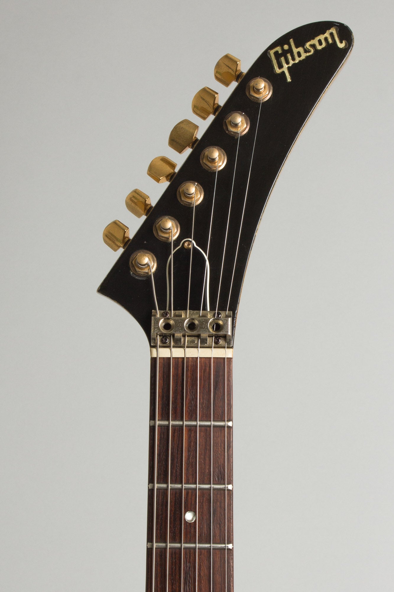 This now-uniquely fitted-out example of the much-coveted 1983 Gibson Custom Shop Edition Explorer had some, um, adventures in the 1980s. A period Kahler Model 2220 trem system was fitted, meaning the body was routed and a locking piece was added behind the nut. This obviously has left the guitar in what we would describe as "player" condition but if you want to play it in the hair-metal tap and squeal/dive bomber mode it is ready to go!