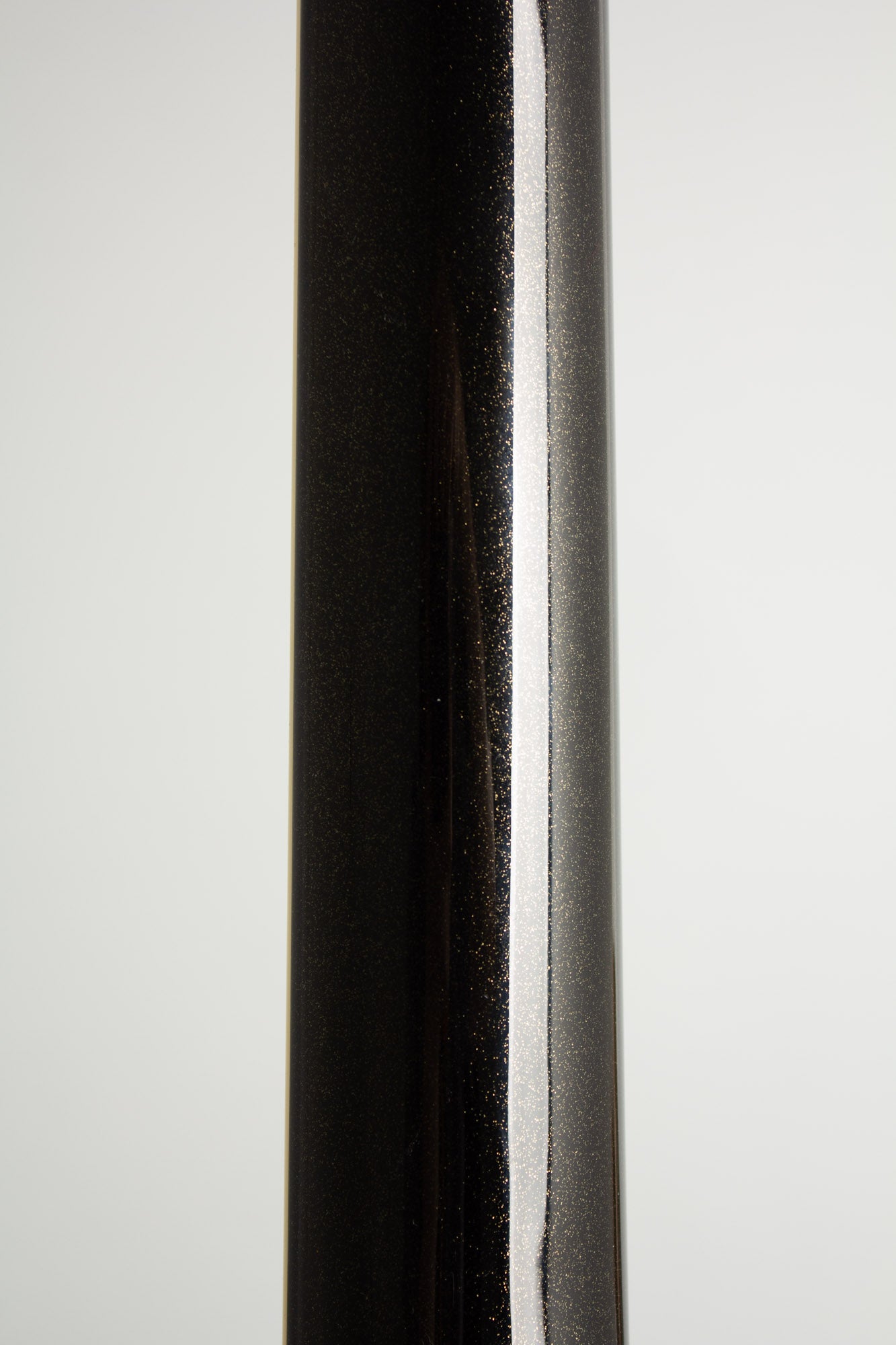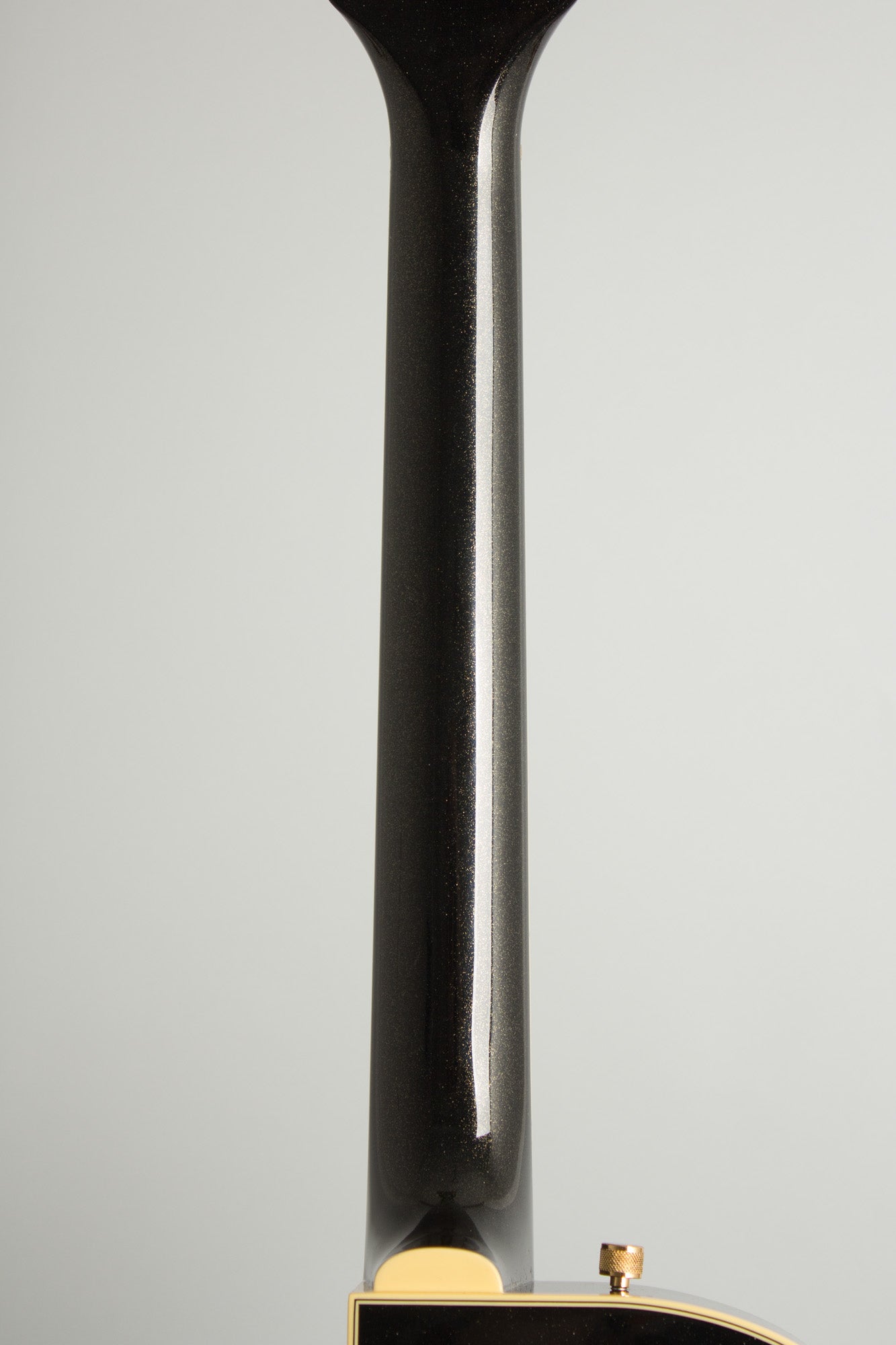 The 12"-radius bound ebony fingerboard has aged mother of pearl Neo-Classic thumbnail inlays and 22 medium jumbo frets sitting atop a laminated maple neck with a standard "U" profile and 25" scale length. The Bigsby B6GP String-Thru tailpiece is mated to a pinned vintage Atkins-style Tru-Arc brass rocking bar bridge and a brass nut.