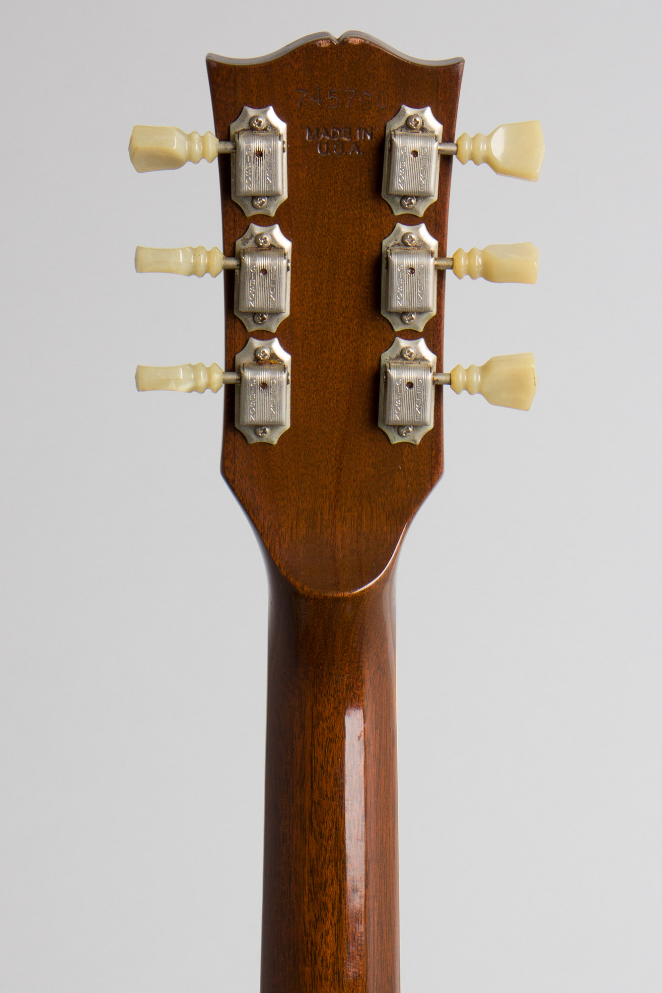 The three-piece mahogany neck has the volute and "Made in USA" stamp typical of '70s instruments, the nut width is quite narrow as it had been since late 1965. This guitar shows very littler play time and remains clean and original, showing only the most minor wear for 50 years of use. It remains a great-sounding and playing instrument, perhaps not from Gibson's more esteemed "Golden Era" but a serious player's guitar still.