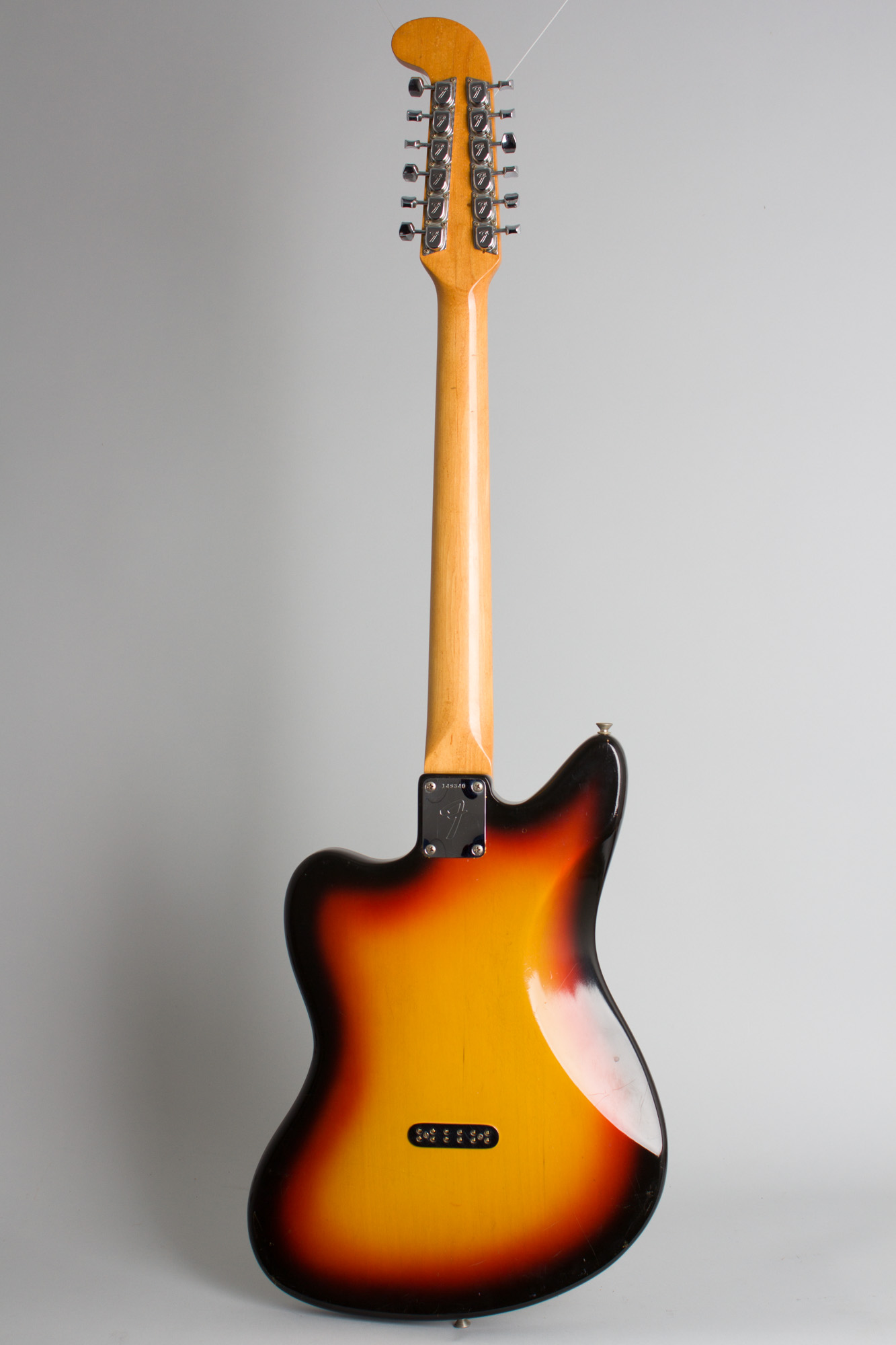 Introduced at the 1965 NAMM Show at the dawn of the CBS/Fender era the Fender 12-string married the popular Jaguar/Jazzmaster style body to a new 12-string neck with a distinctive extended "hockey stick" headstock. The neck itself is typically Fender; slim and very comfortable. These are often considered the best-playing electric 12s of the 1960s, and certainly one of the most practical such design.