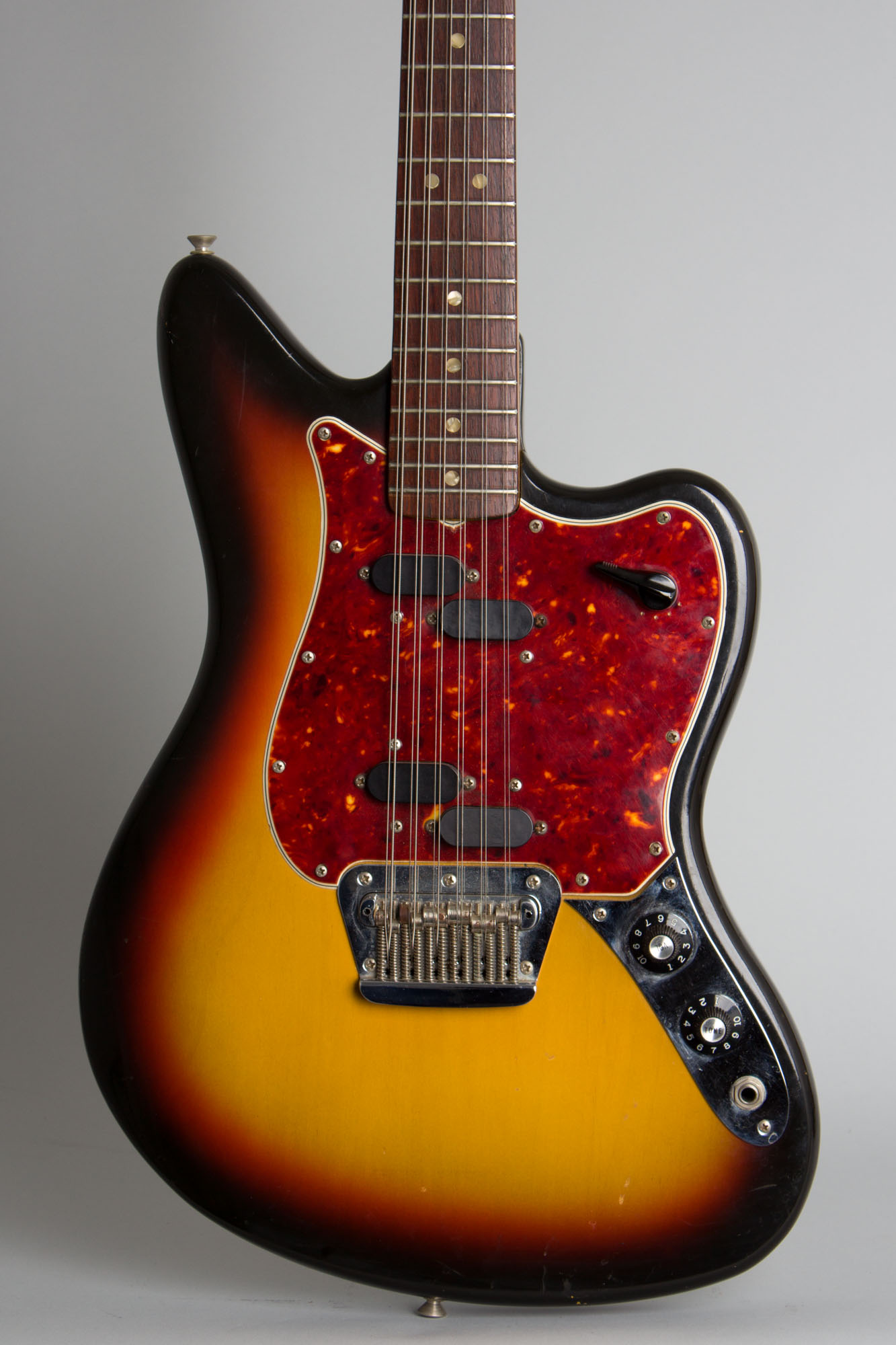 Fender Electric XII Owned and used by Elliott Sharp Model 12 String Solid Body Electric Guitar (1966), made in Fullerton, California, serial # 149340, sunburst lacquer finish, alder body, maple neck with rosewood fingerboard, black gig bag case.