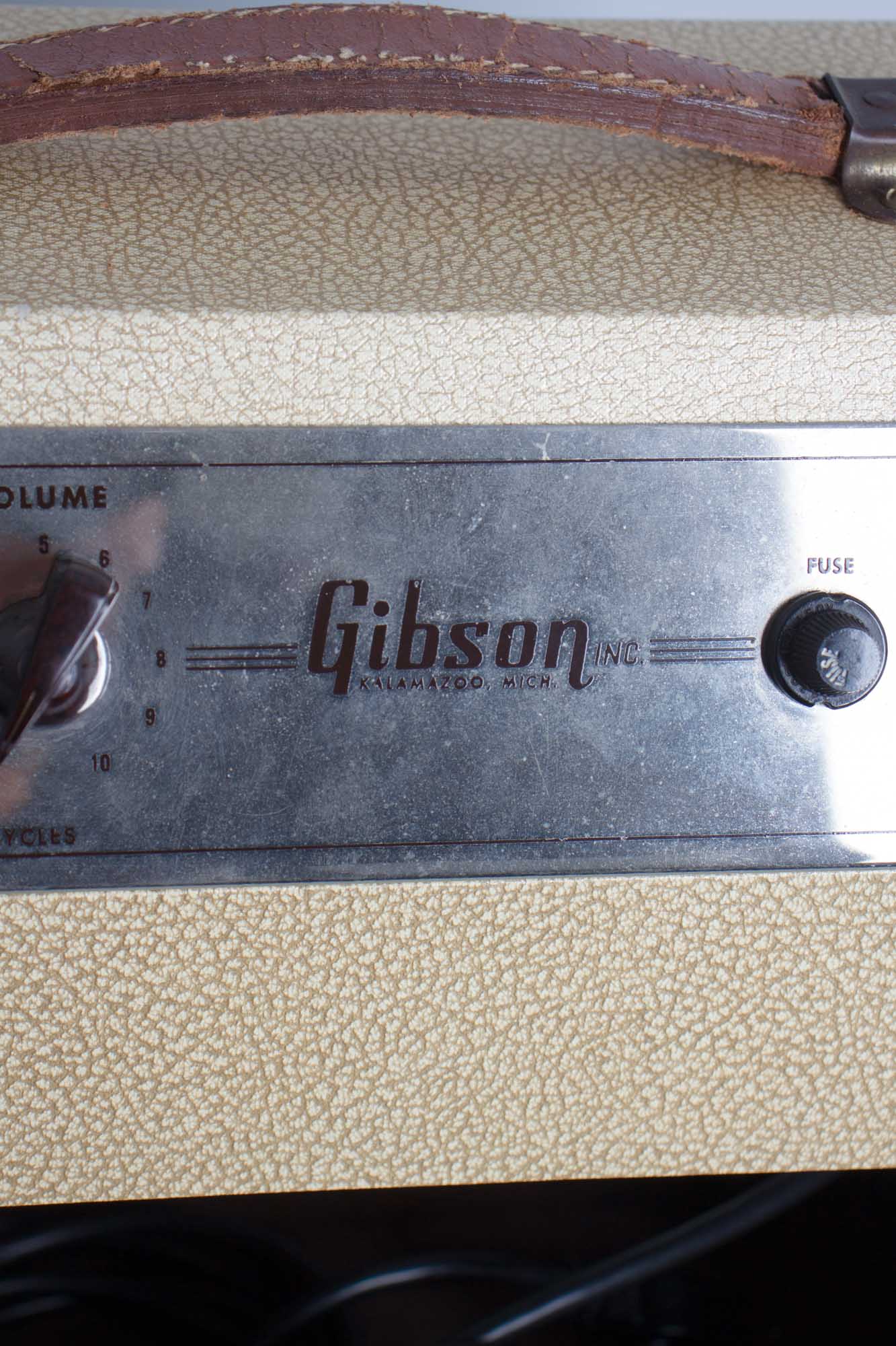 Like the Fender Champ, the GA-5 sports a single volume control and two instrument inputs, though, unlike that competitor it is provided with the luxury of a wholly separate power switch! The tubes are the expected compliment of a 12AX7, a single 6V6 and a 5Y3, in this case all Gibson-branded RCA made. This is one of Gibson's coolest period amps, with a lot of tone for not being much bigger than a lunchbox!