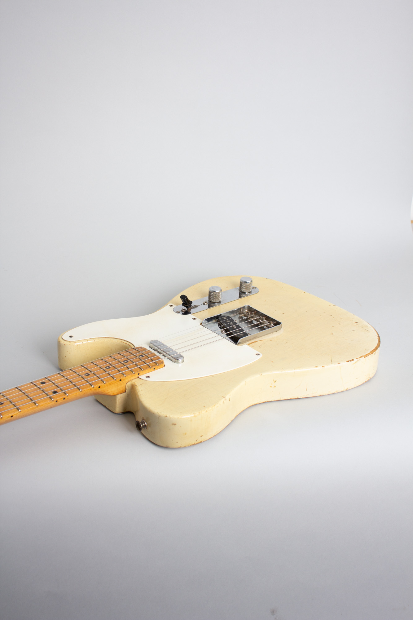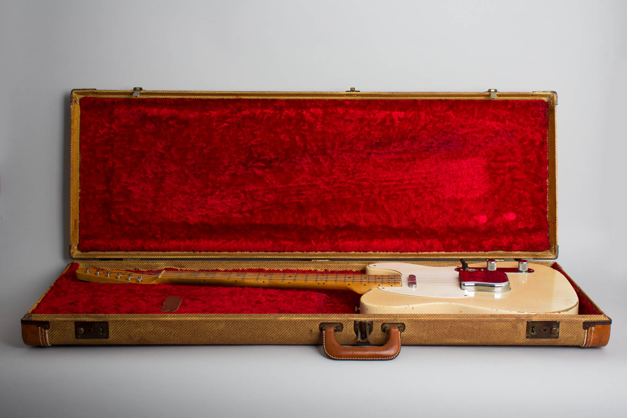 This beautiful natural relic "white guard" Telecaster has some play time under its belt but remains a superb example of original Fender greatness, worn in just right and a fantastic playing and sounding instrument. This early 1957 example was made just as spring '57 was dawning at Fullerton and shows a mix of features specific to the time period.