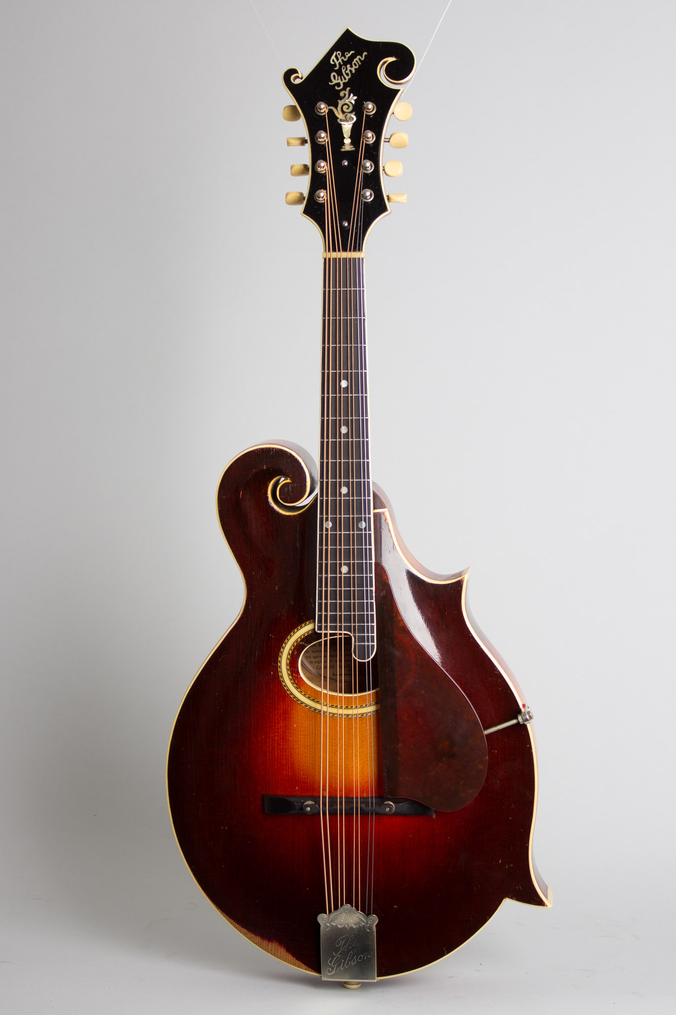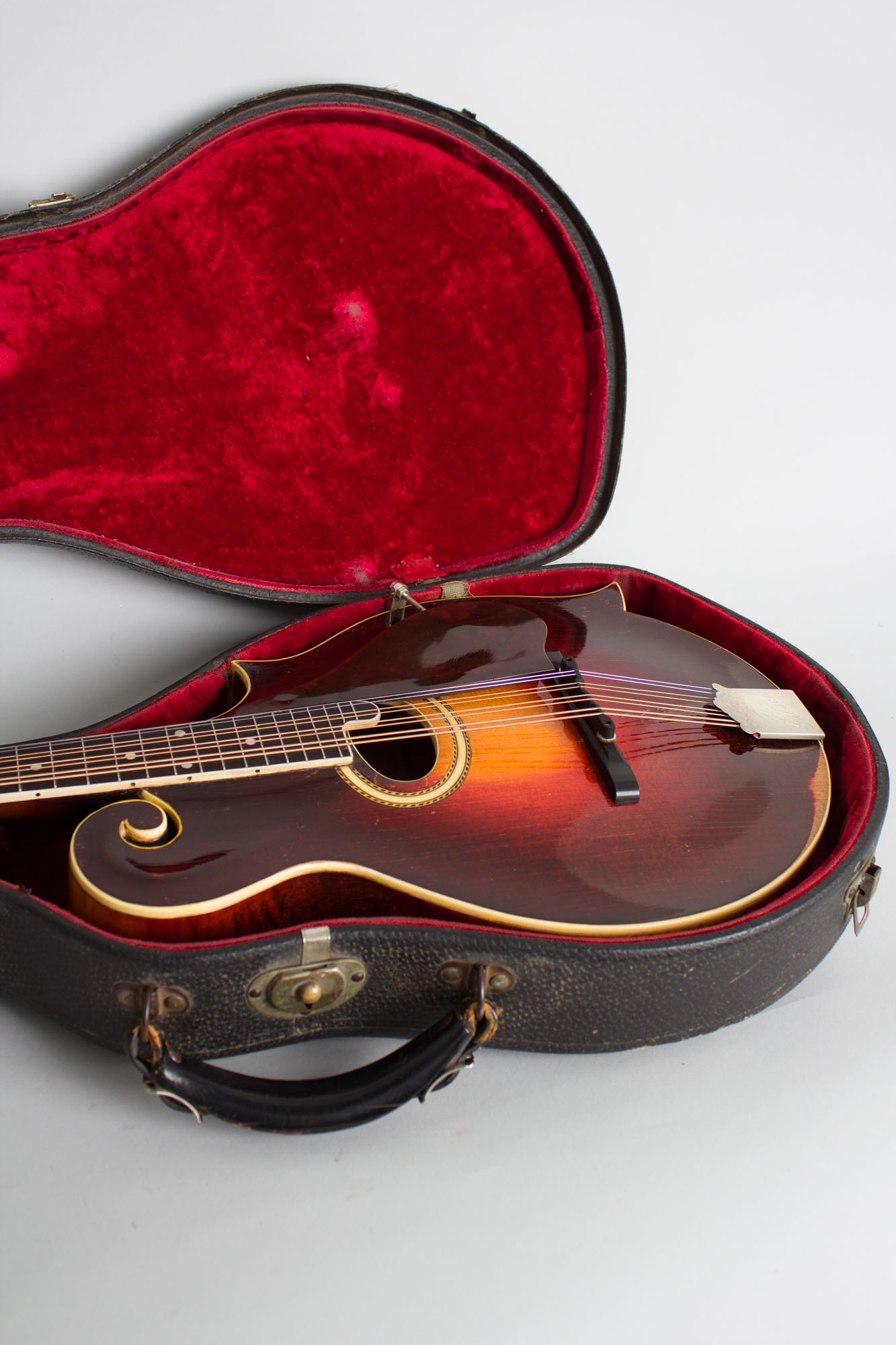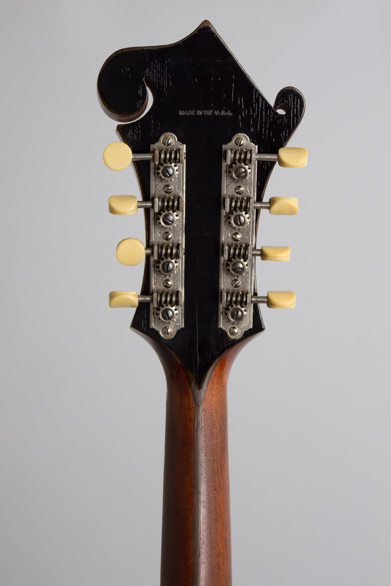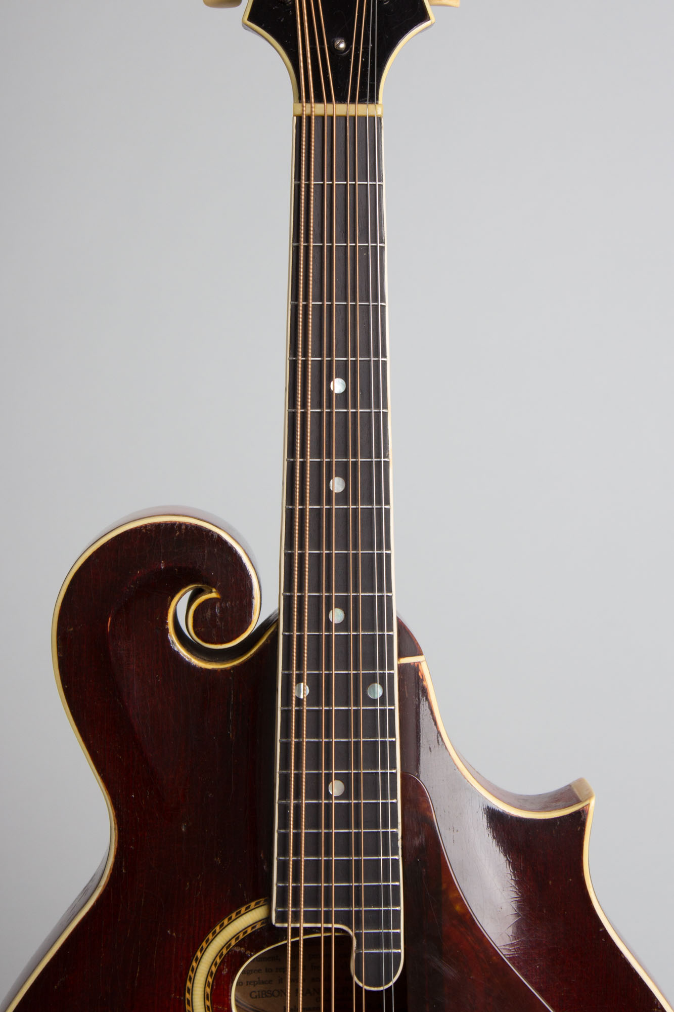 This late 1920s example is practically identical to the Loar era instruments, distinguished primarily by the lacquer (as opposed to Varnish) finish. Many of the raw components it was assembled from may well have sat in stock for some time before this instrument was finished out, as Mandola sales had plummeted. This H-4 maintains the unmatched sound quality and perfected 1022-24 features including the adjustable truss rod, raised adjustable bridge and slimmer neck profile.
