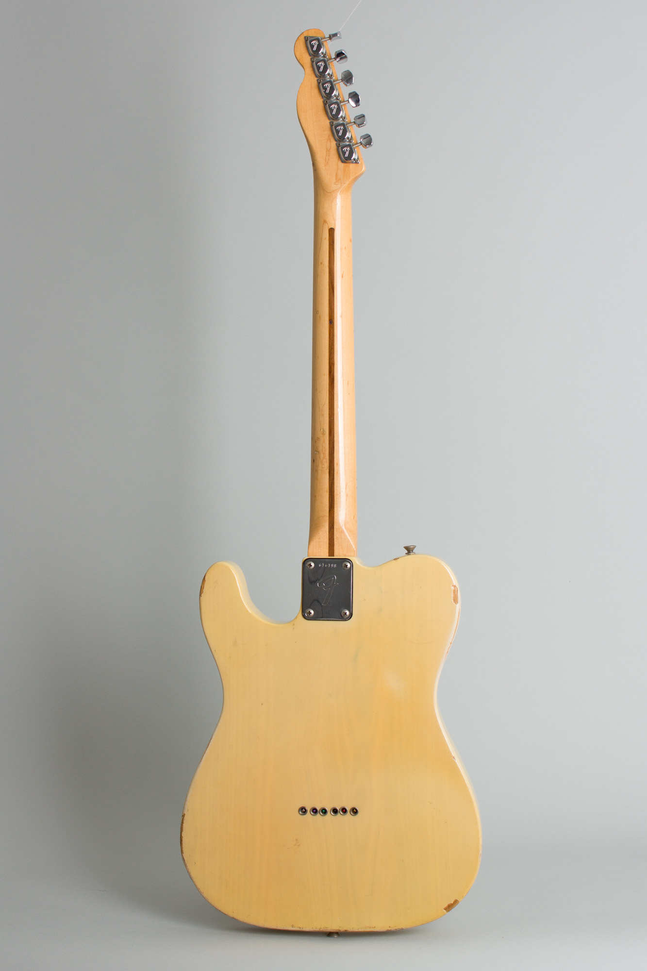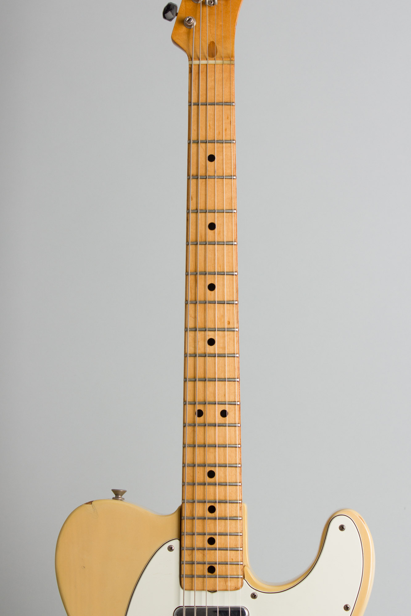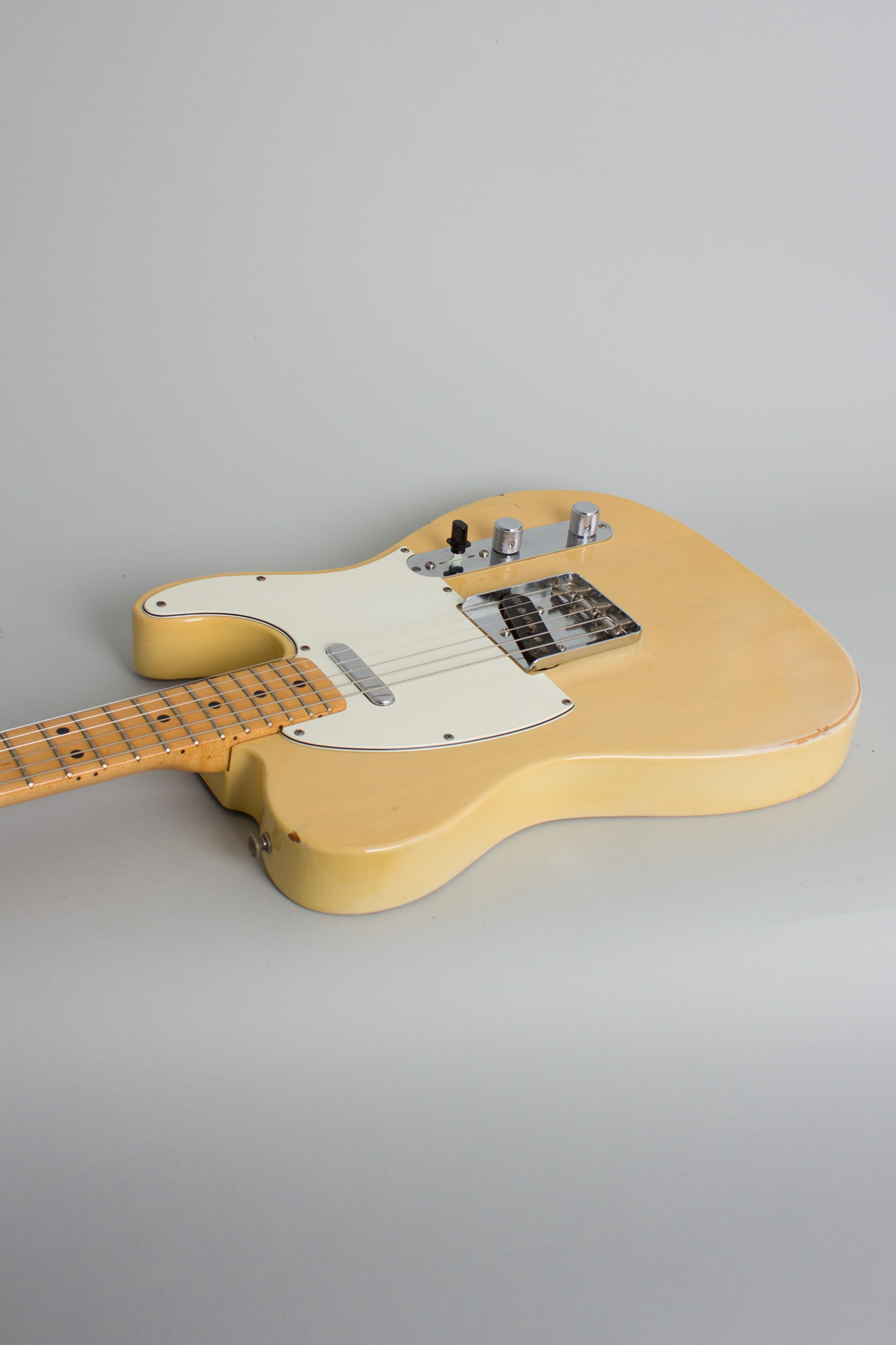 This traditionally styled blonde Fender Telecaster dates to around 1973, fully into the CBS '70s but still largely unchanged from its 1968 specs. The original solidbody Telecaster with standard single-coil pickups and wiring was somewhat overshadowed in this period by several new models (The Thinline, Custom and Deluxe) fitted with the new Seth Lover-designed Fender humbucking pickups, but survived without alteration nonetheless.