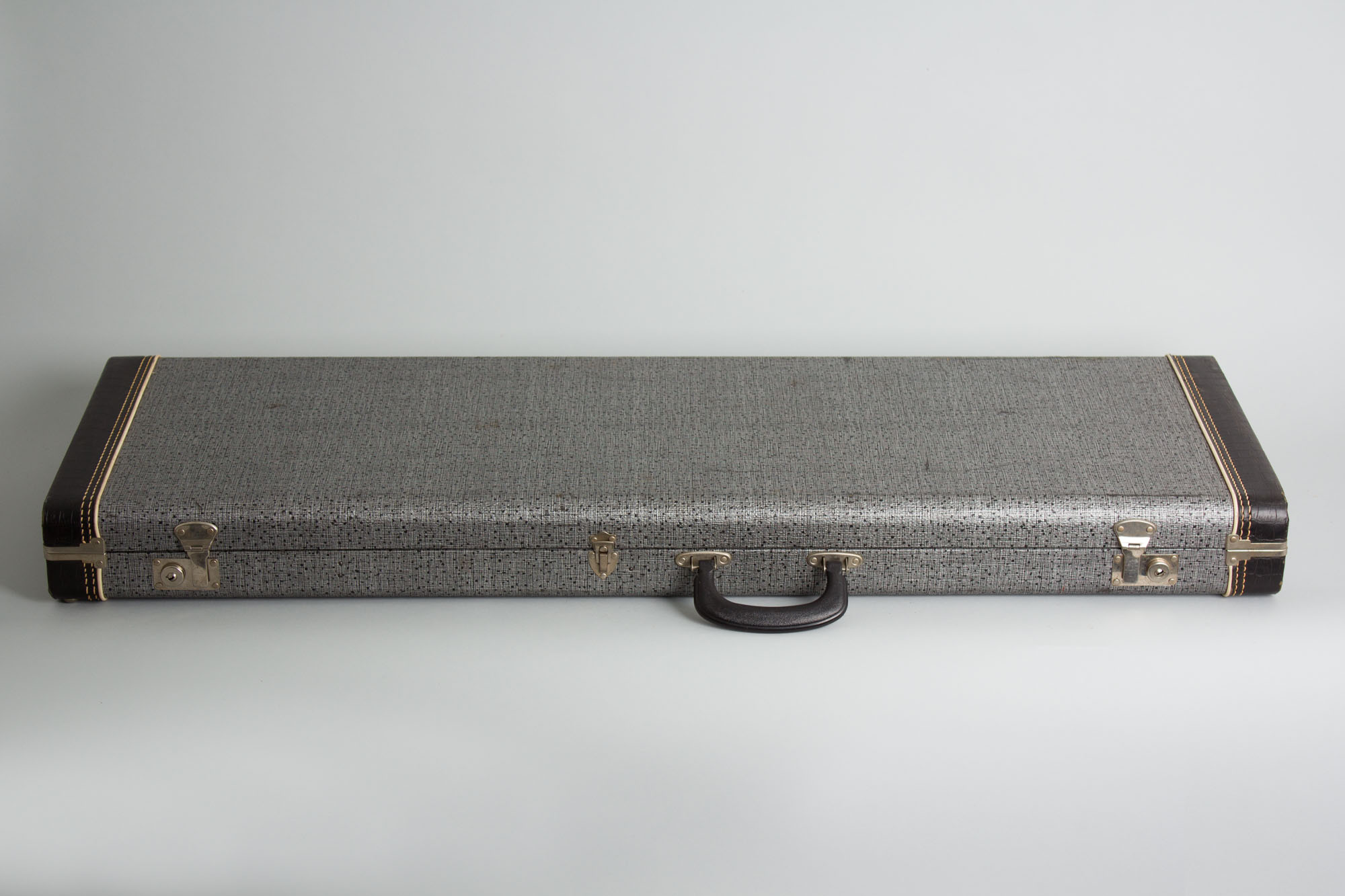 All is complete except the snap-on bridge cover is long gone; the trem arm remains original. There is some minor fingerboard and feelable fret wear in the lower positions, but the guitar remains quite playable. The original case is solid and very clean. Overall this is a very nice example of one of CBS/Fender's cooler late 1960's ideas, not the most popular version at the time but a sought-after gem now. Overall Excellent - Condition.