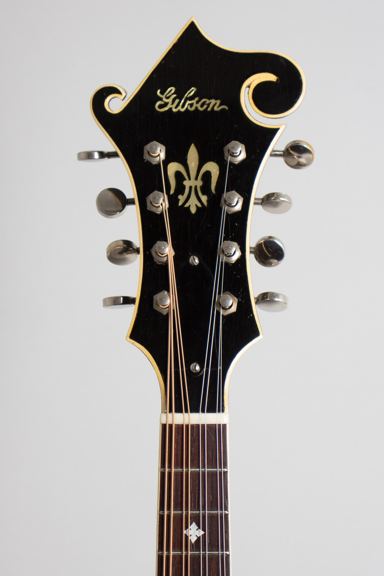 The F-7 features a typical Gibson sunburst finish on the top with a dark shaded back and sides, similar to the better known L-7 guitar. There is elegant shaped pearl inlay on the fingerboard (in a variation on the "Nick Lucas" pattern) and a pearl fleur-de-Lys on the headstock. Originally retailing at $125.00 (plus case) the mandolin was half the cost of an F-5, but still priced above nearly all other extant mandolins during the depression.