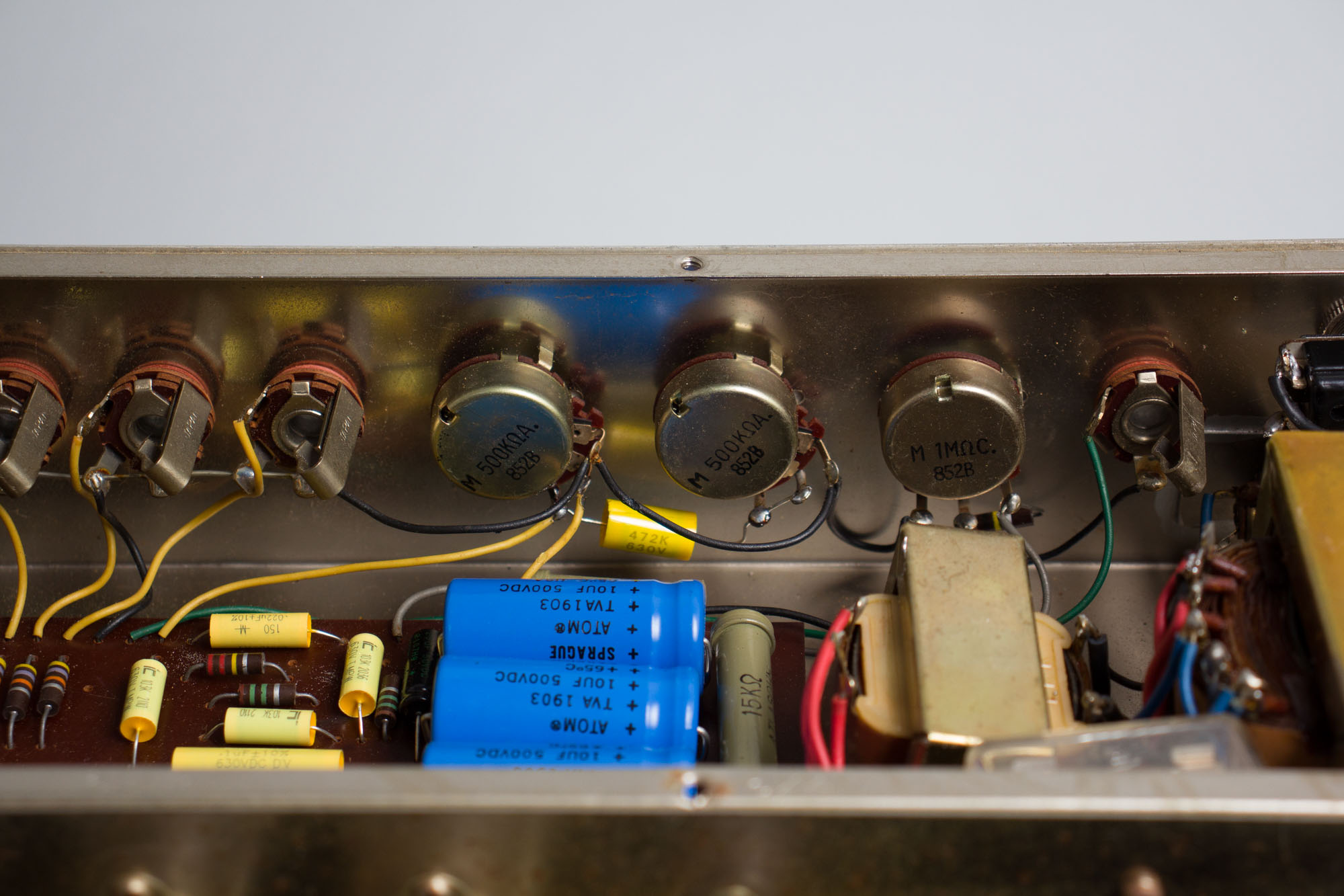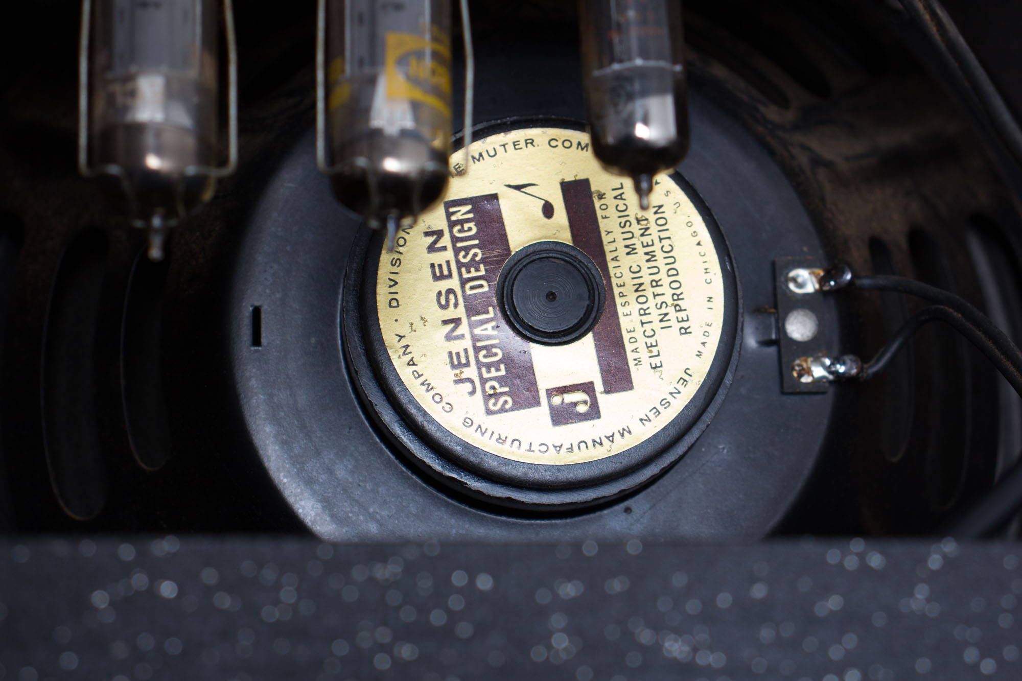 Electrically, this U-45B is all-original. The original Jensen C12R speaker bears the code 220-534, dating it to the 34th week of 1965. Both the power and output transformers appear original, as well as all three pots. The amp has seen our typical maintenance and servicing including a grounded 3-prong power cord, replacement of all electrolytic capacitors, cleaning of all sockets, pots and jacks and biased to spec.