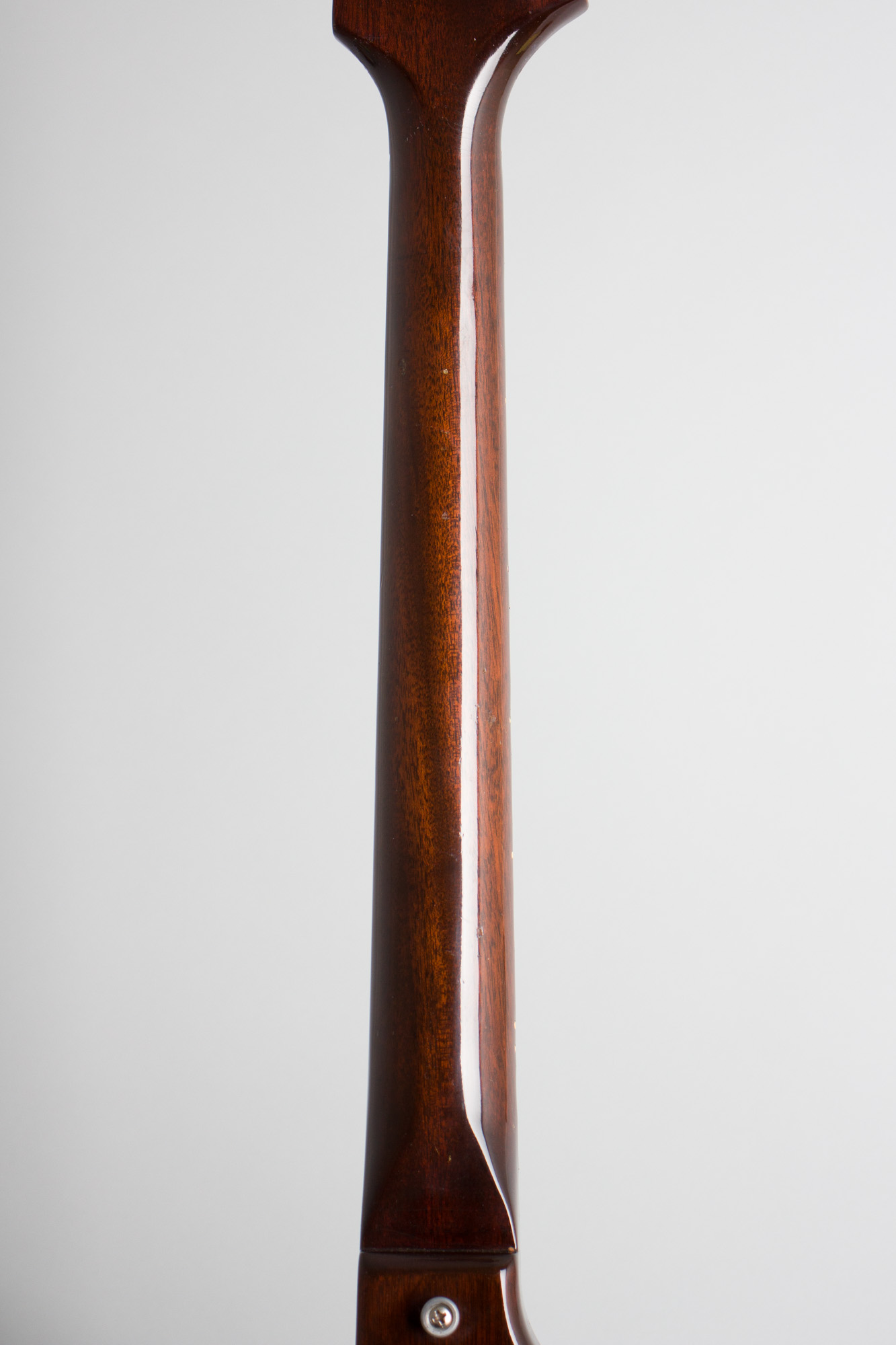 Overall length is 43 3/8 in. (110.2 cm.), 13 7/16 in. (34.1 cm.) wide at lower bout, and 1 3/8 in. (3.5 cm.) in depth, measured at side of rim. Scale length is 24 3/4 in. (629 mm.). Width of nut is 1 1/2 in. (38 mm.).