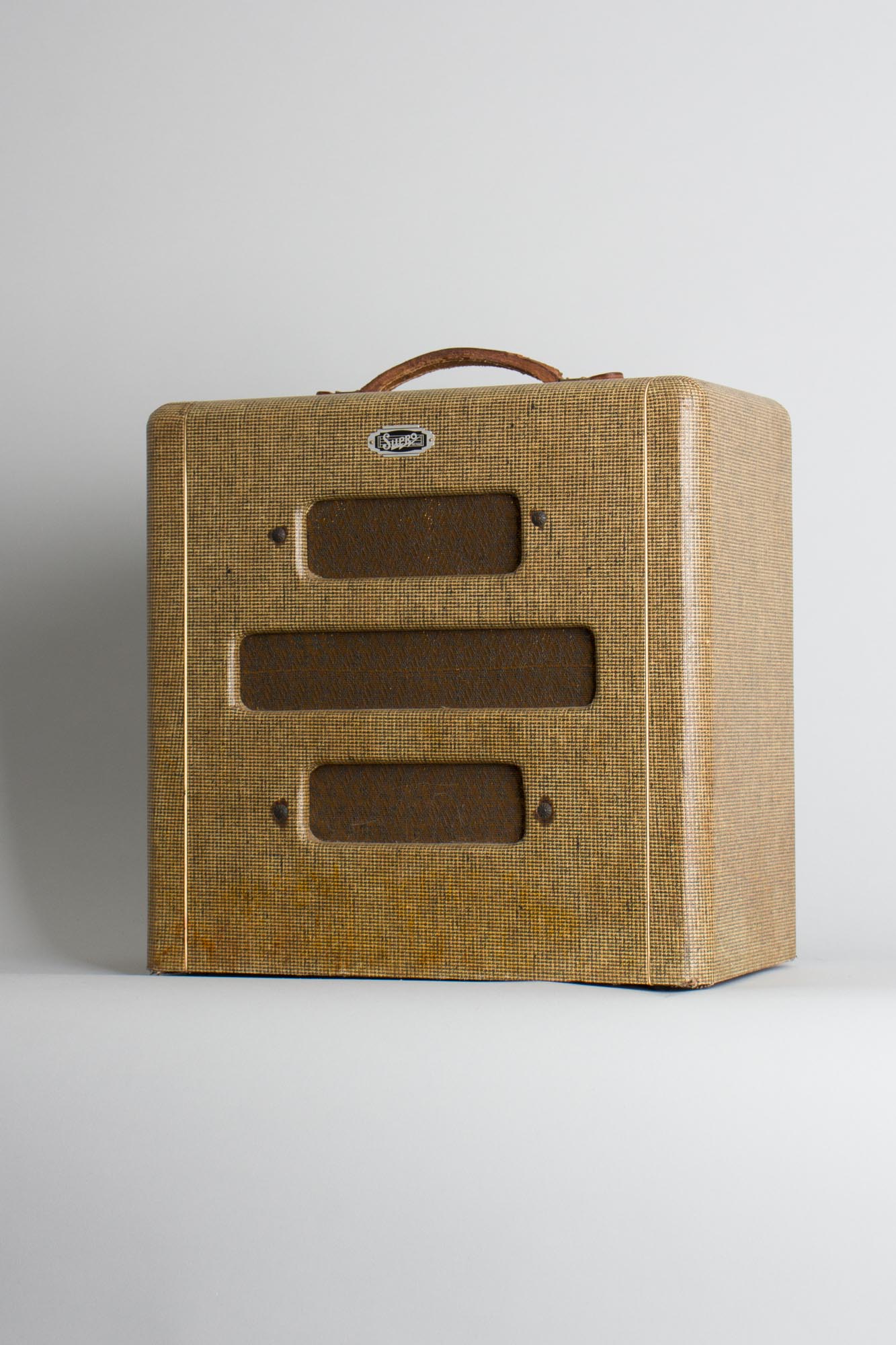 Supro Model Tube Amplifier, made by Valco (1948), made in Chicago, serial # V-12677, tweed fabric covering finish.