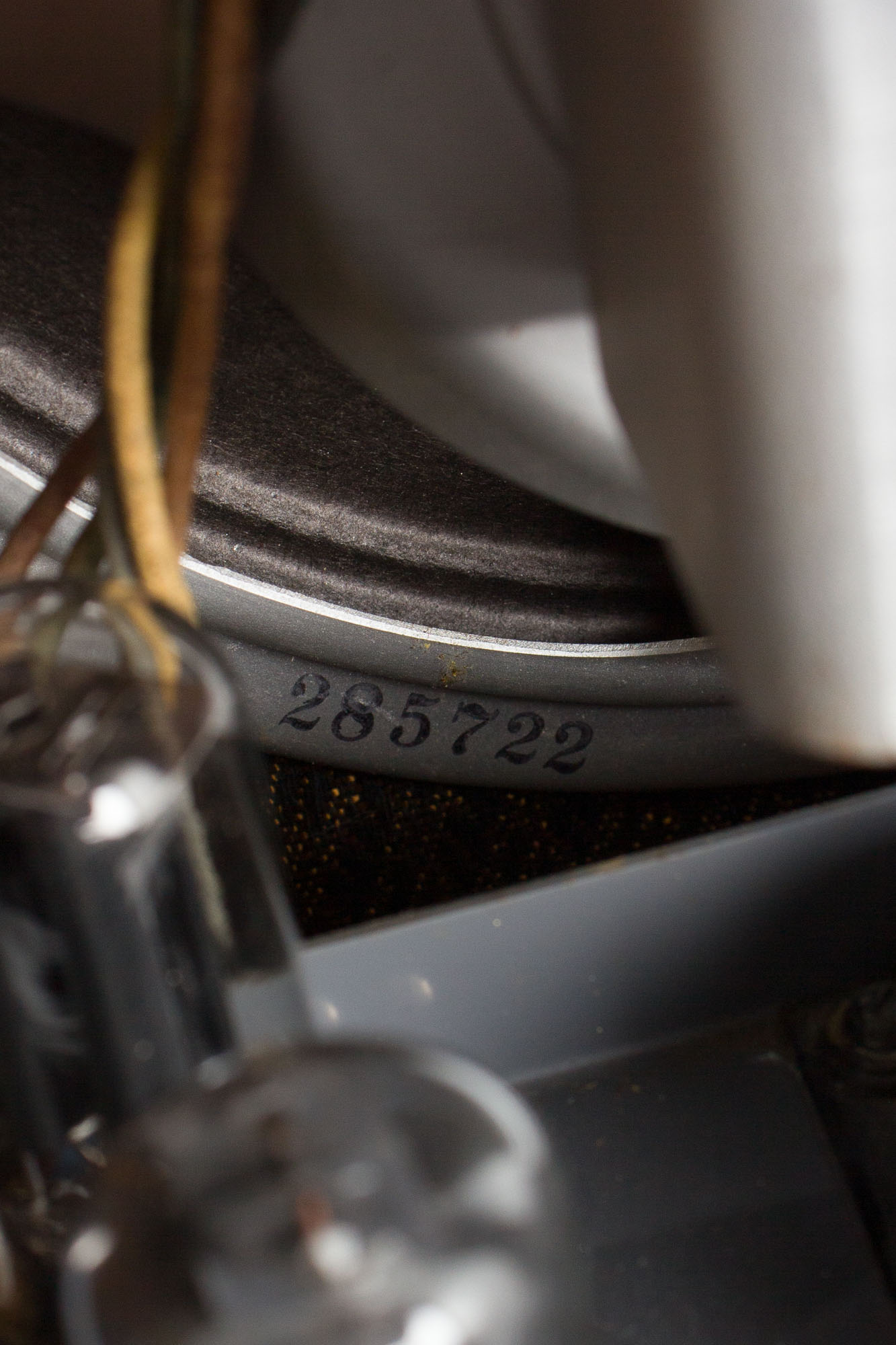 Electrically the amp is nicely original, including the 10" Rola field coil speaker bearing the marking 285-722 dating it to the 22nd week of 1947. It appears to retain its original cone and still sounds fantastic. Both transformers are original to the amp, the power transformer bears the marking 138-713, dating it to the 13th week of 1947 and the output bearing the marking 56053. The amp has received our typical servicing and maintenance, including replacement of all electrolytic capacitors, a grounded 3-prong power cord, all sockets, pots and jacks cleaned and biased to spec.