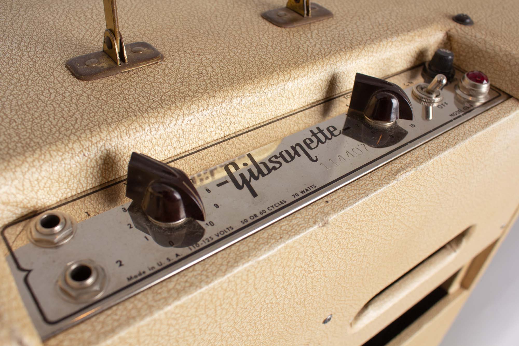 Gibson GA-8 Gibsonette Model Tube Amplifier (1960), made in Kalamazoo, Michigan, serial # 114407, white tolex finish.