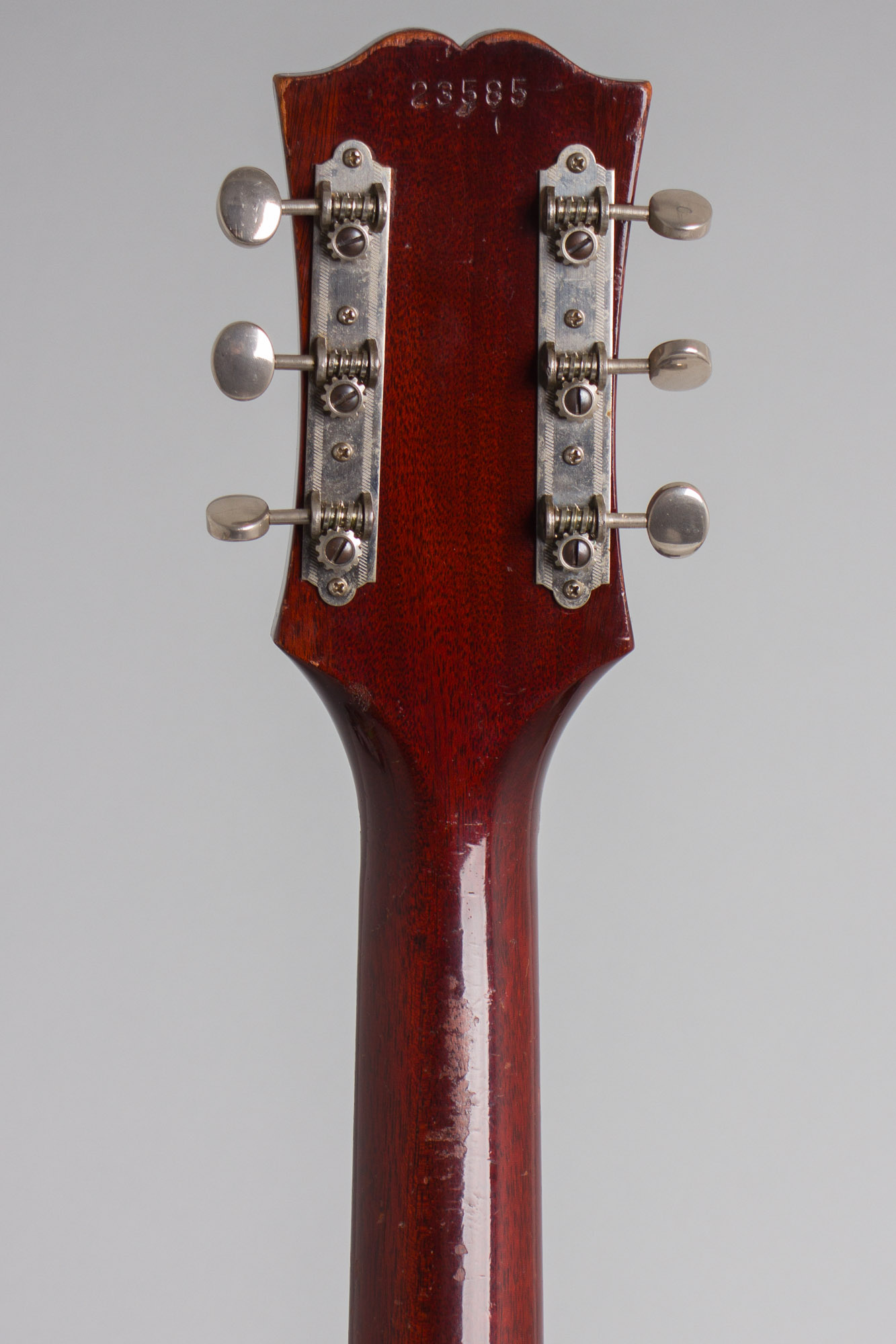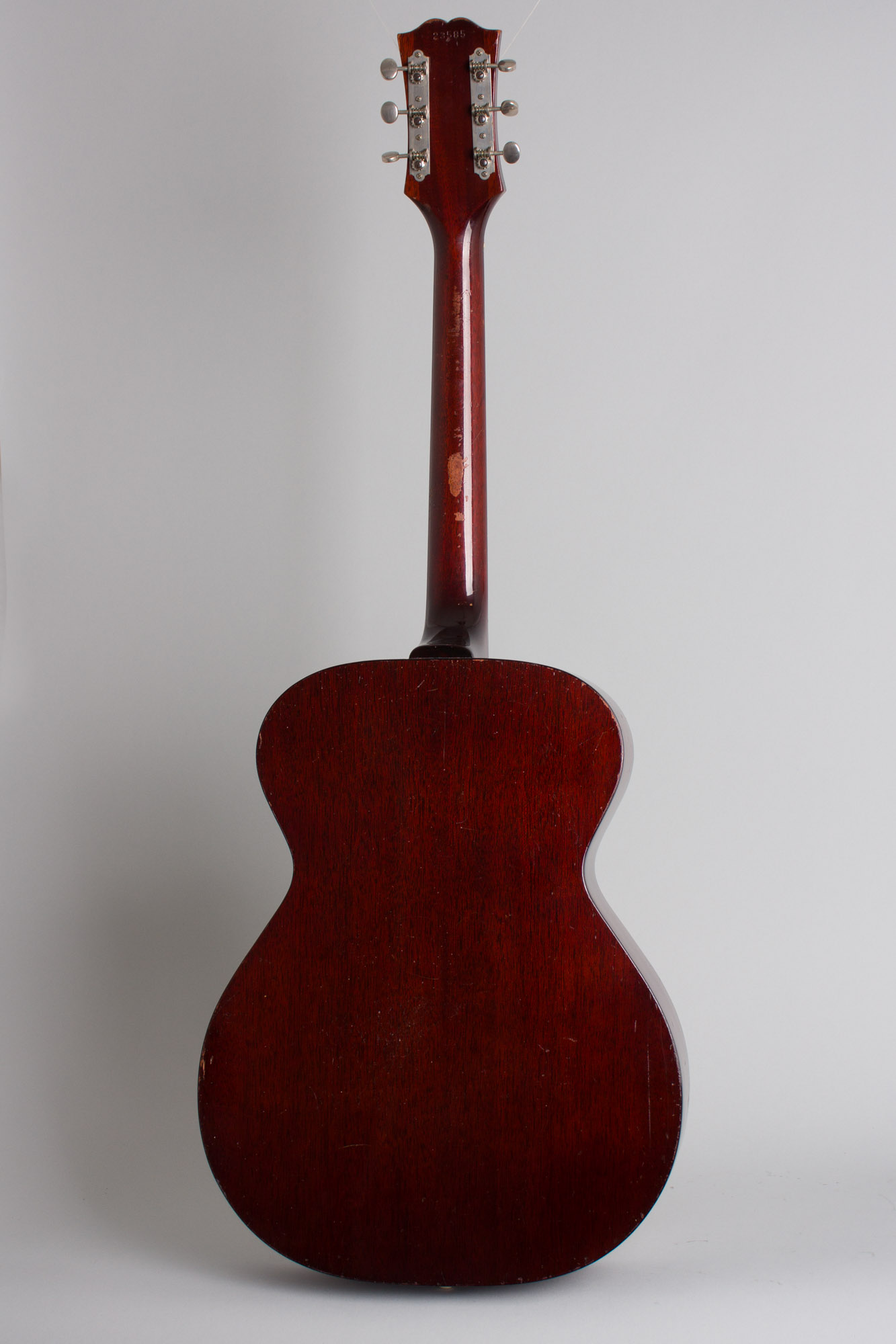 This is an extremely well-built and responsive guitar, much lighter than the more familiar Rhode-Island made 1970's Guilds and easily on par (or better) compared with similar size Martin or Gibson offerings from the same era. This early 1963 model has some older-styled features compared to the more common mid 1960's examples including the 1950s "open book" headstock shape, Waverly openback strip tuners and a slightly different pickguard design. This F-30 is a really superb sounding instrument, a smooth finger-or-flatpicking guitar with a vibrant midrange tone which works equally well as a strummed chord machine. This may not be the cleanest example we have had but one of the best sounding and playing.