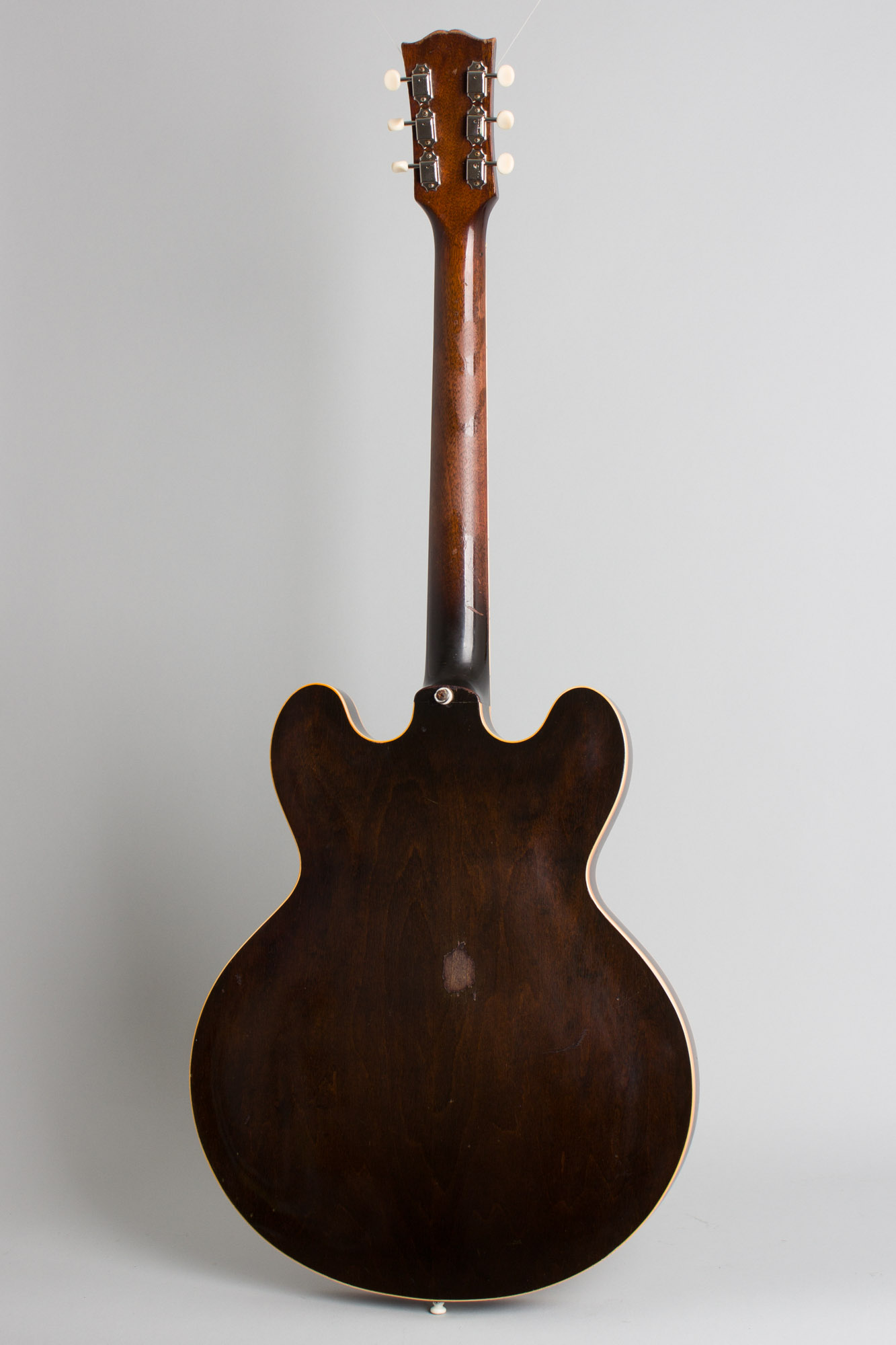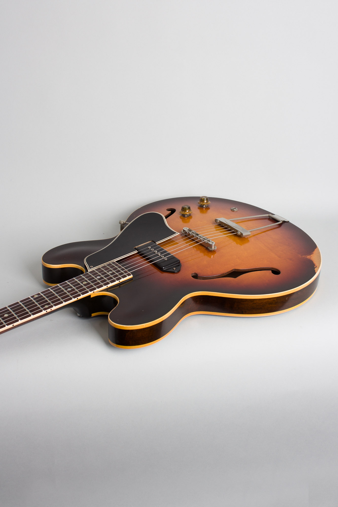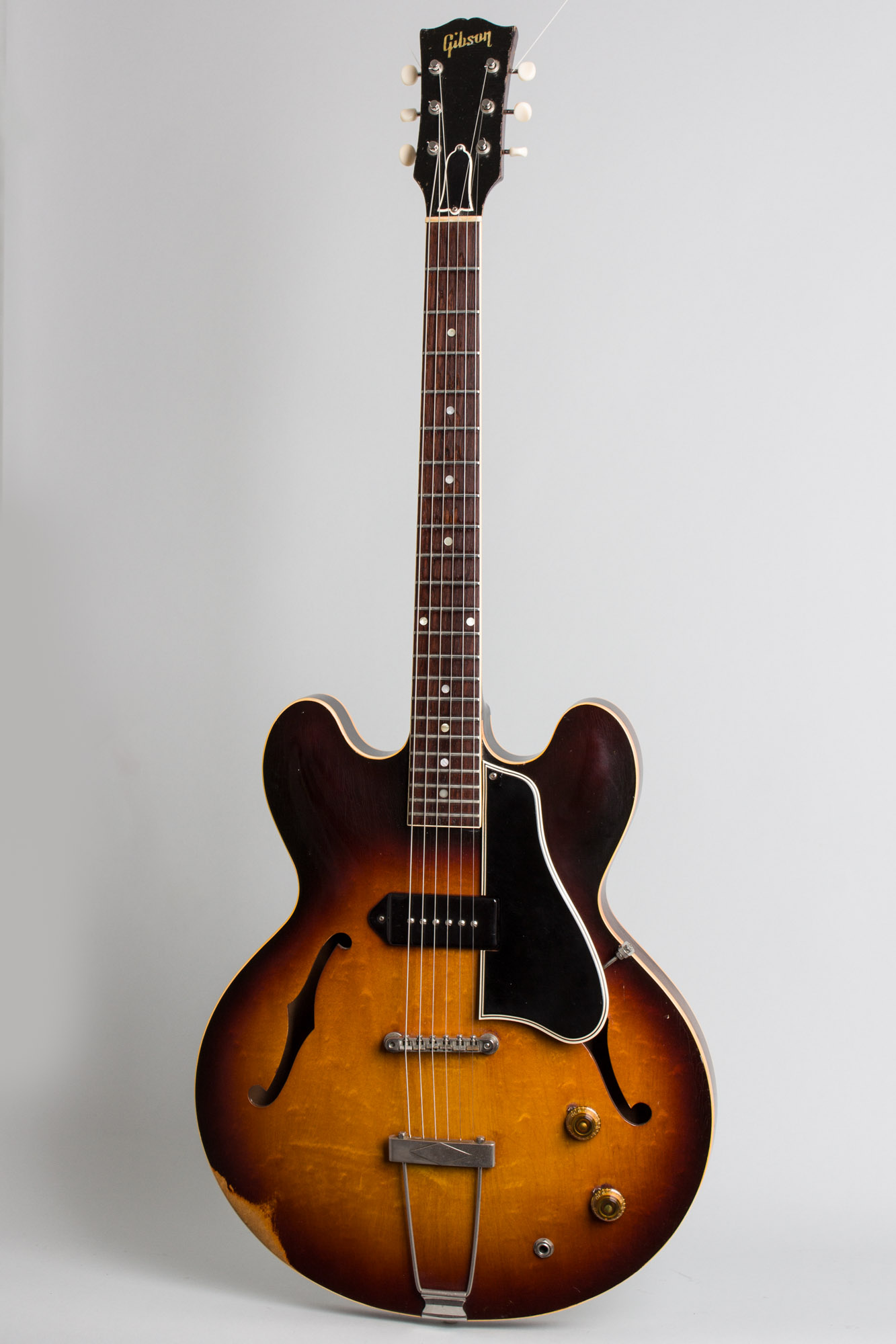 Gibson ES-330T Model Thinline Hollow Body Electric Guitar (1959), made in Kalamazoo, Michigan, serial # S1037-12 (FON), sunburst top, dark back and sides finish, laminated maple body, mahogany neck with rosewood fingerboard, brown tolex hard shell case.
