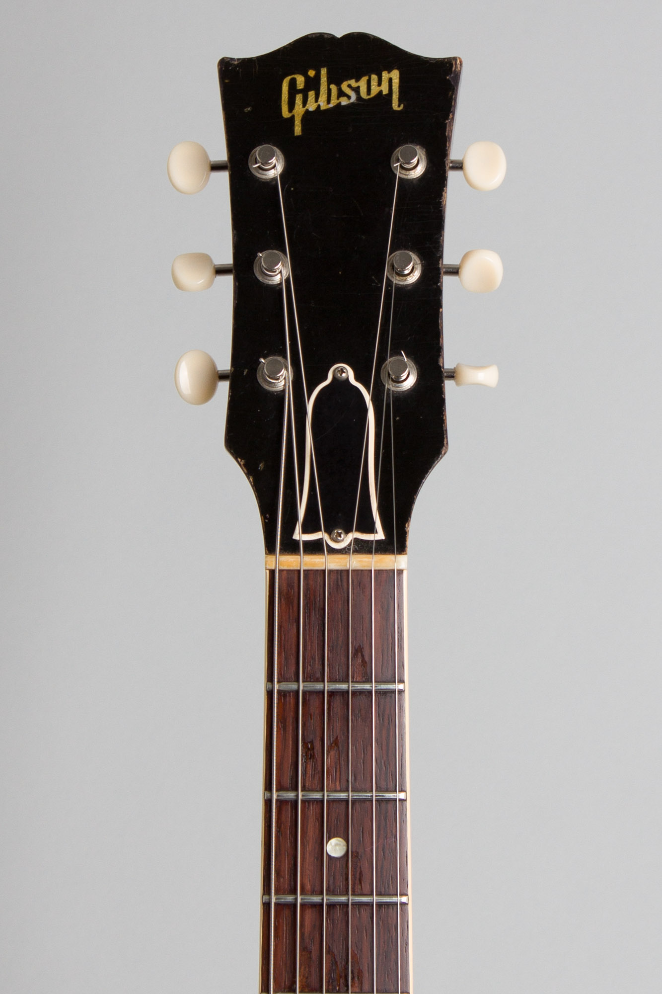 The guitar has been neatly refretted with the fingerboard trued, with some visible filled divots. This guitar is an excellent player, the wear and parts substitutions do not affect function at all. This is a real player's piece, not for the "clean freak" but we like to think some soul is played into this one. The brown HSC is a correct style re-issue. Overall Very Good Condition.