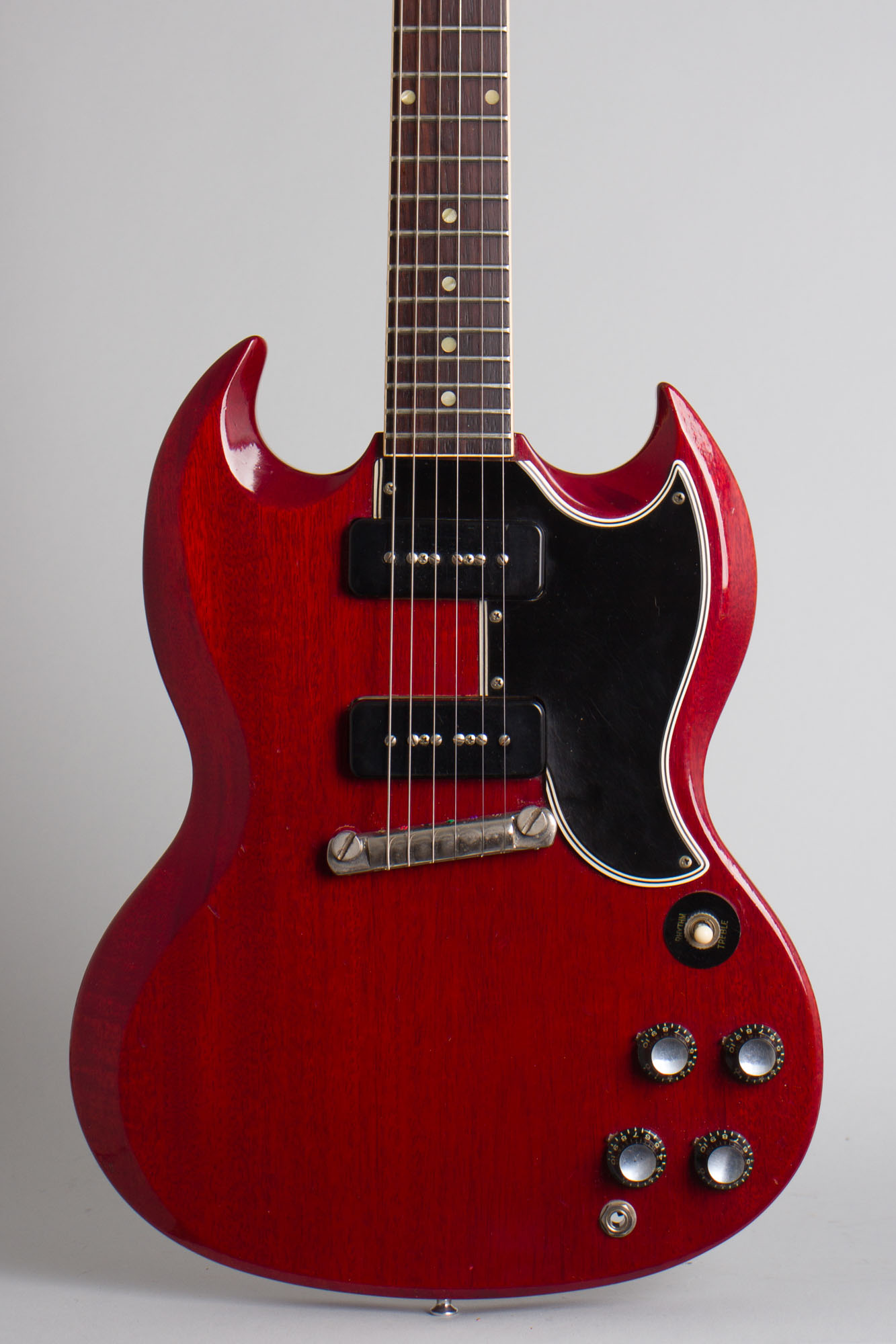 Gibson SG Special Model Solid Body Electric Guitar (1961), made in Kalamazoo, Michigan, serial # 26018, cherry lacquer finish, mahogany body and neck, rosewood fingerboard, original black hard shell case.