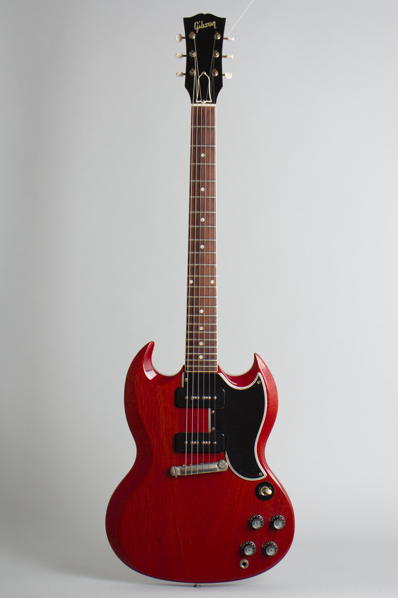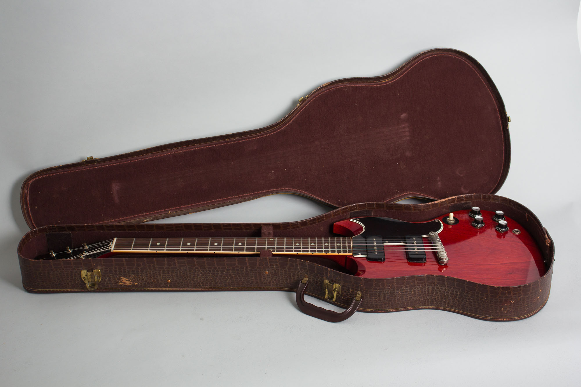 Gibson SG Special Model Solid Body Electric Guitar (1961), made in Kalamazoo, Michigan, serial # 13374, cherry lacquer finish, mahogany body and neck, rosewood fingerboard, original brown alligator chipboard case.
