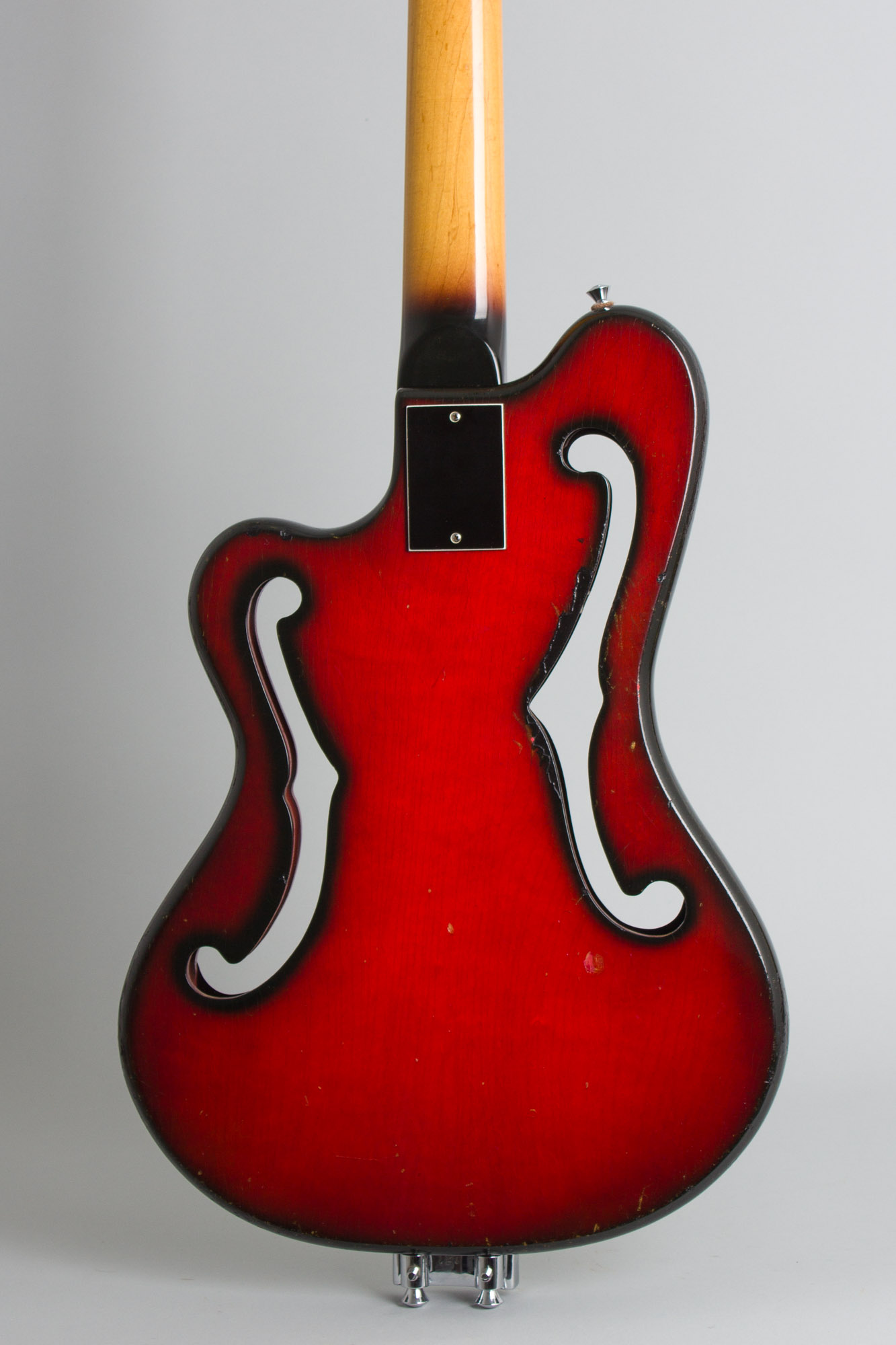 Ampeg AUB-1 Model Electric Bass Guitar (1967), made in Linden NJ, serial # 721, red/black sunburst finish, laminated maple body, maple neck with ebony fingerboard, original black hard shell case.