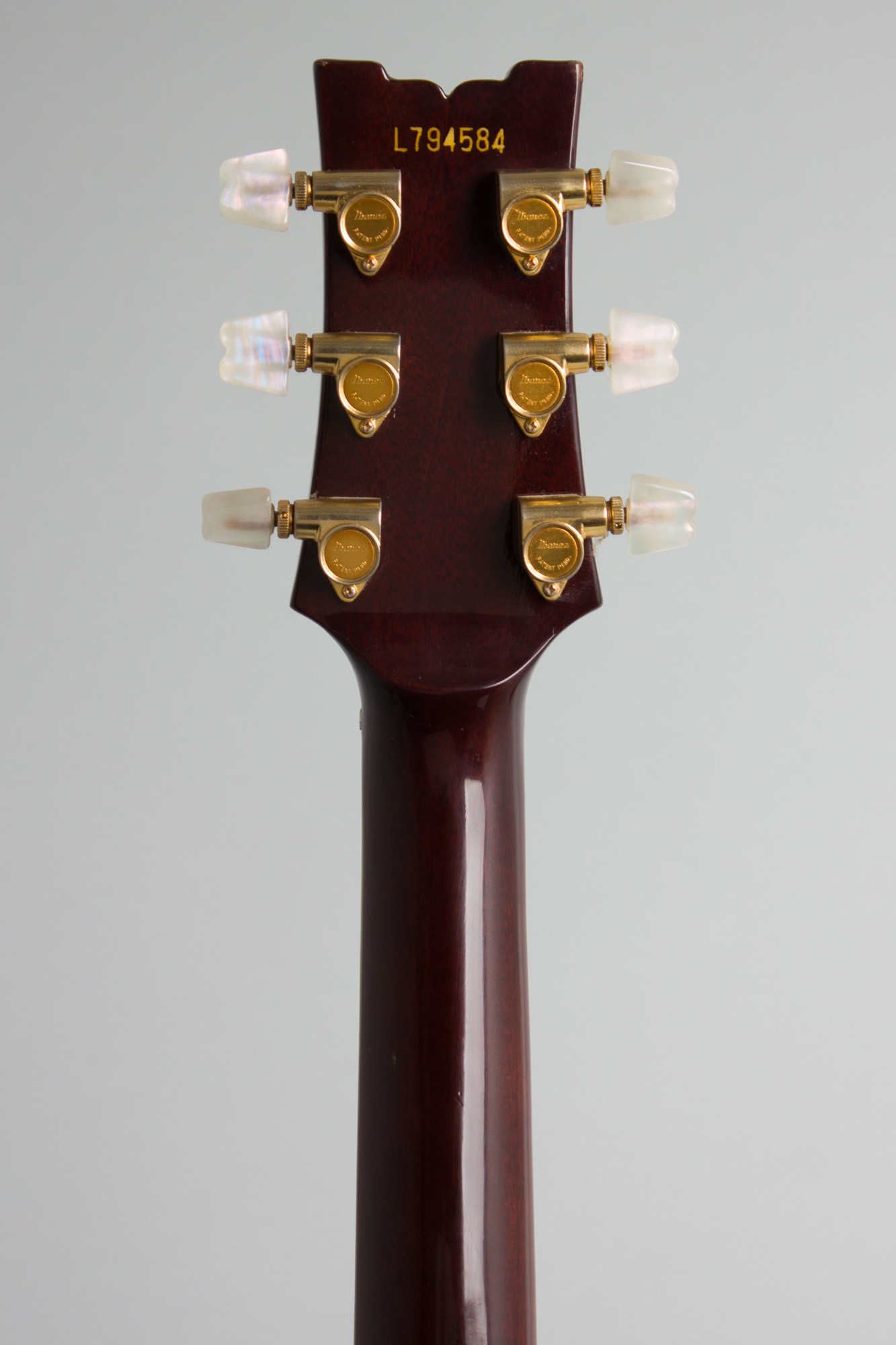 This now 45 year old guitar shows signs of light use but remains all original and in excellent playing condition. The finish has some light scuffing and a couple of shallow scratches here and there; that's about it. There are a couple of light checks in the finish off the jack (but no cracks to the wood) and a few tiny flaked spots along the heck heel joint with the back and upper side. The gold plating is worn away in spots, most heavily on the tailpiece. The large '70s frets show hardly any wear and this is an excellent playing guitar, one of the best Japanese instruments of the period when several of these makers really stepped up their game to challenge the slumping Gibson company with truly world class, professional grade guitars. Excellent Condition.
