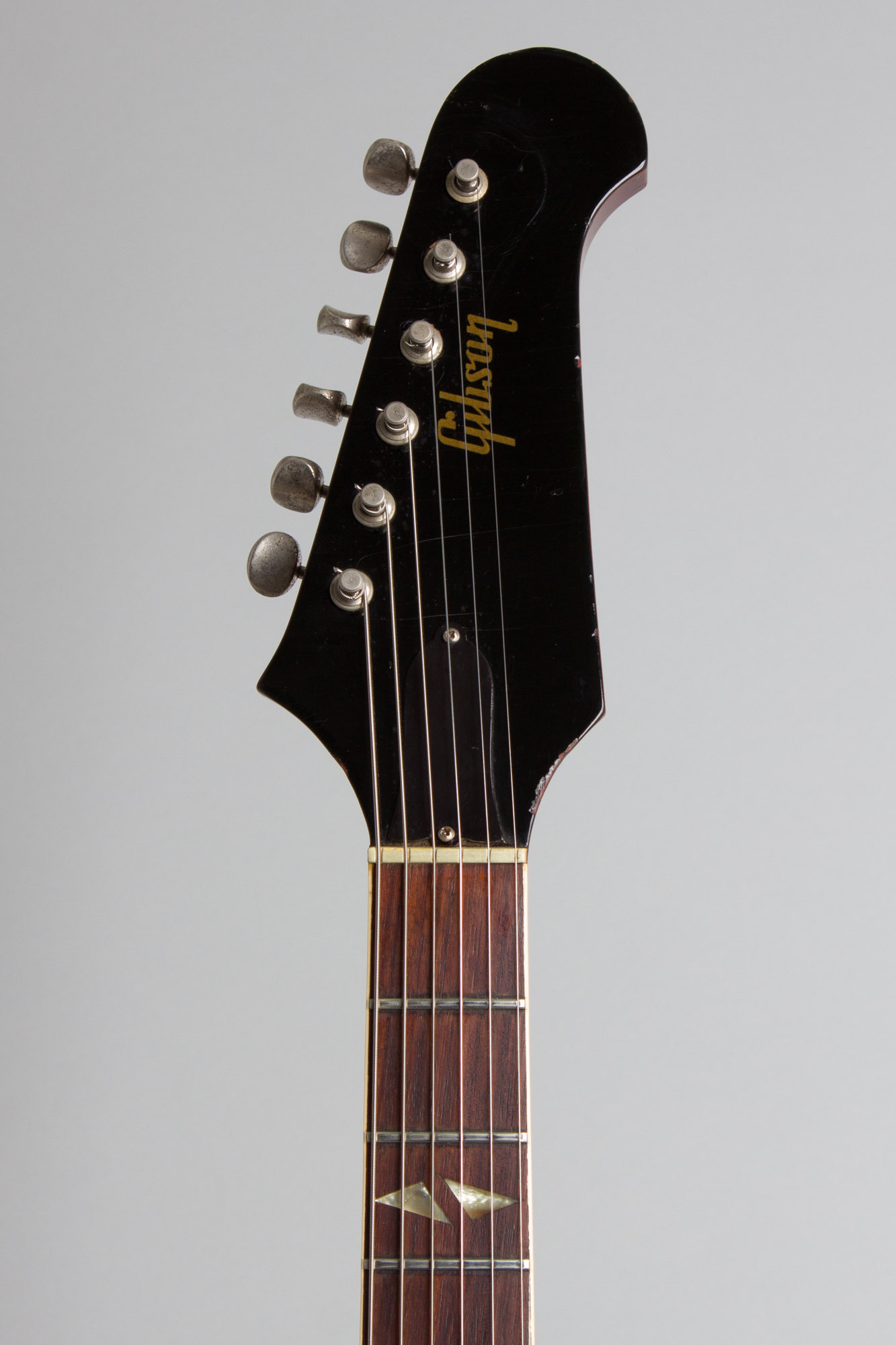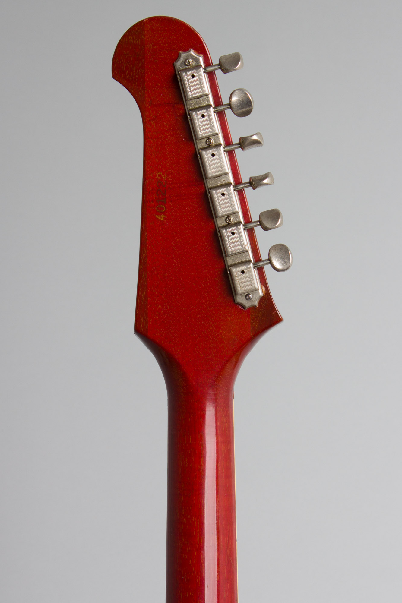 The frets have been crowned down a bit flatter than stock bit still play fine; they show some minor subsequent wear; the nut is original. This is simply of the nicest "Trinis" we have had, a great playing and sounding example still resting in the original yellow-lined hard shell case. Excellent Condition.