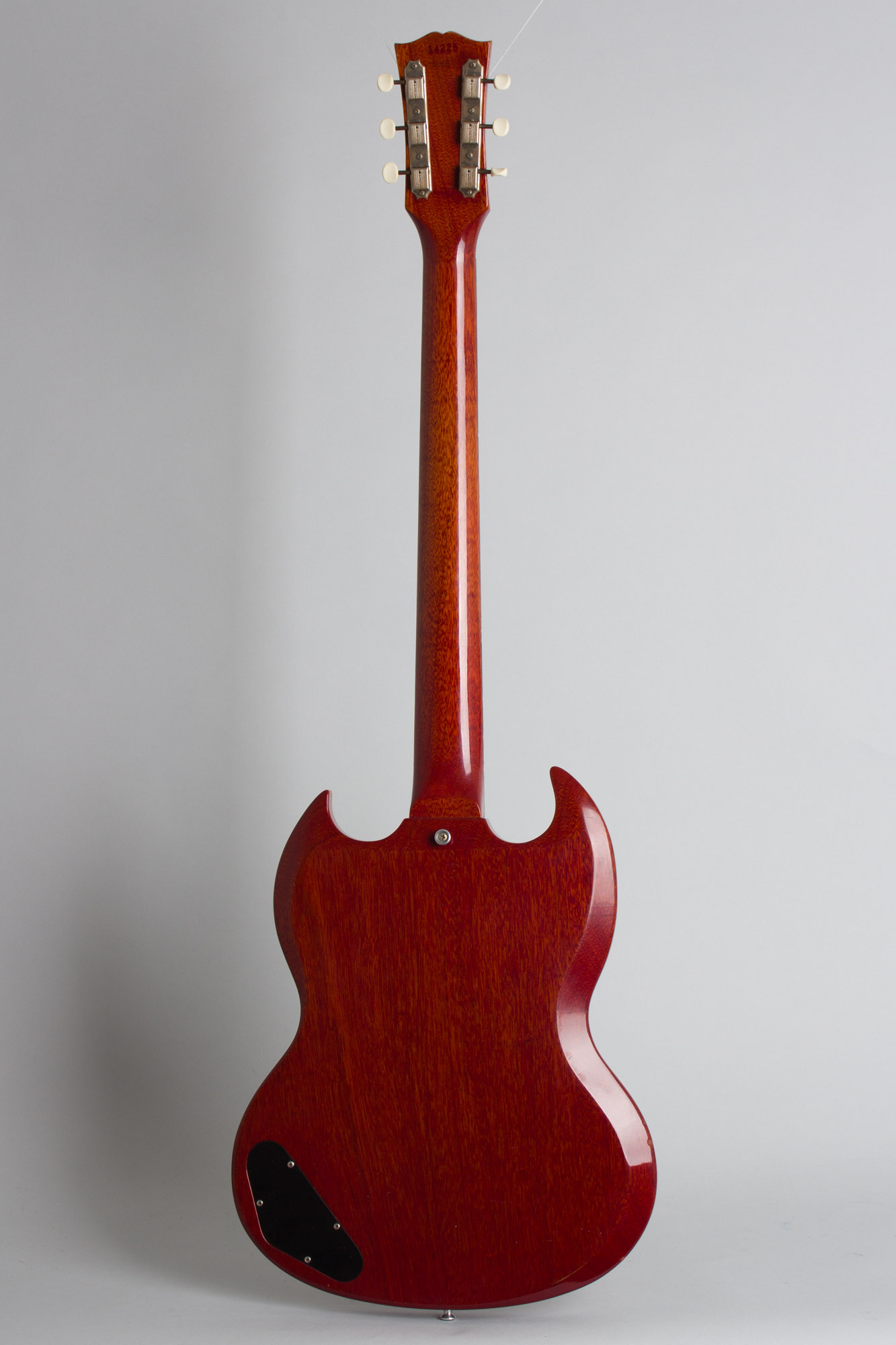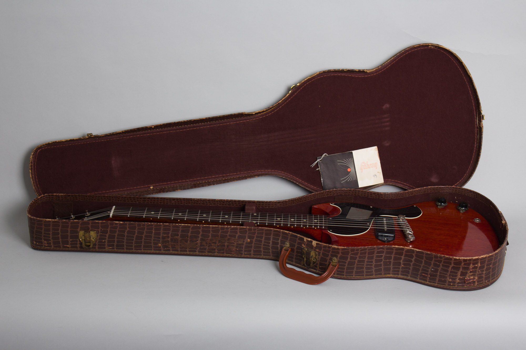 Gibson SG Les Paul Junior Model Solid Body Electric Guitar (1961), made in Kalamazoo, Michigan, serial # 14225, cherry lacquer finish, mahogany body and neck, rosewood fingerboard, original brown alligator chipboard case.