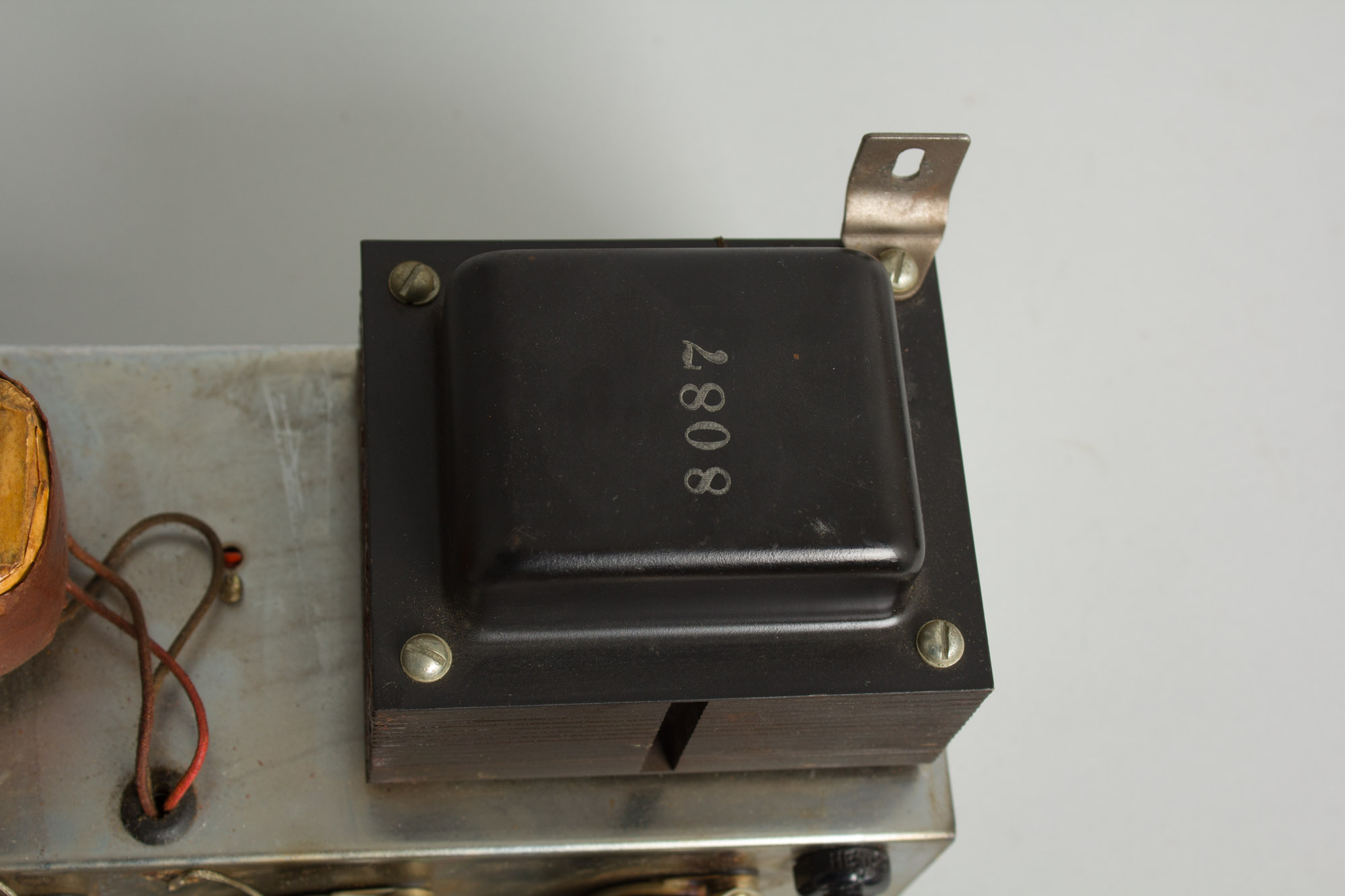 Electrically, this Pro is nearly all-original. The Jensen P15N speaker bears the code 220-139, dating it to the 39th week of 1961, and although not original, it is very much the correct speaker for this amp and sounds wonderful. The Triad-made power, choke and output transformers are all original, bearing the codes 8087, 1846 and 14560, respectively. The pots appear original and all date to the 41st week of 1955. The amp has otherwise seen our typical maintenance and servicing, including replacement of all electrolytic capacitors, a grounded 3-prong power cord, cleaning of all pots, sockets and jacks and biased to spec.