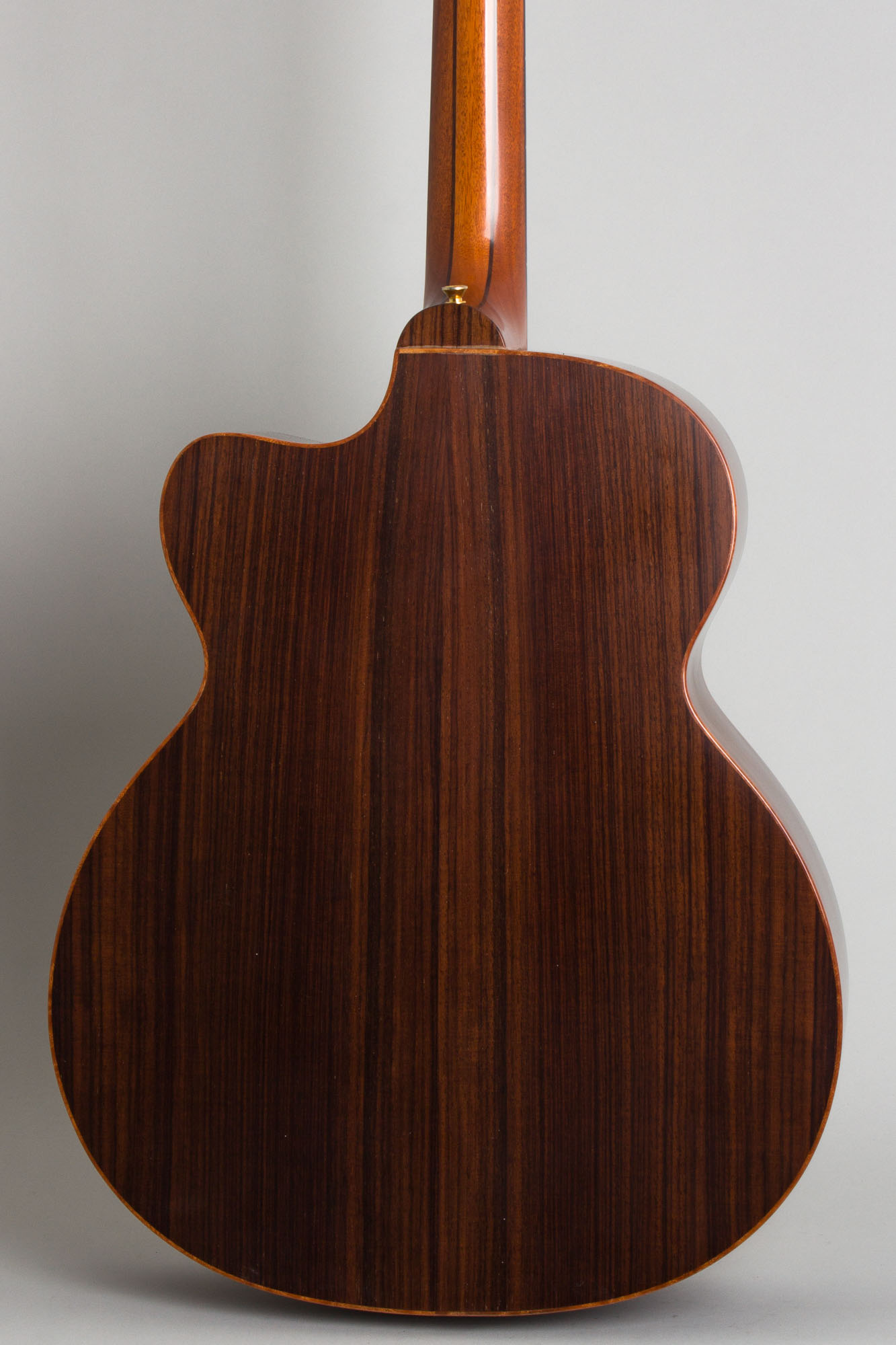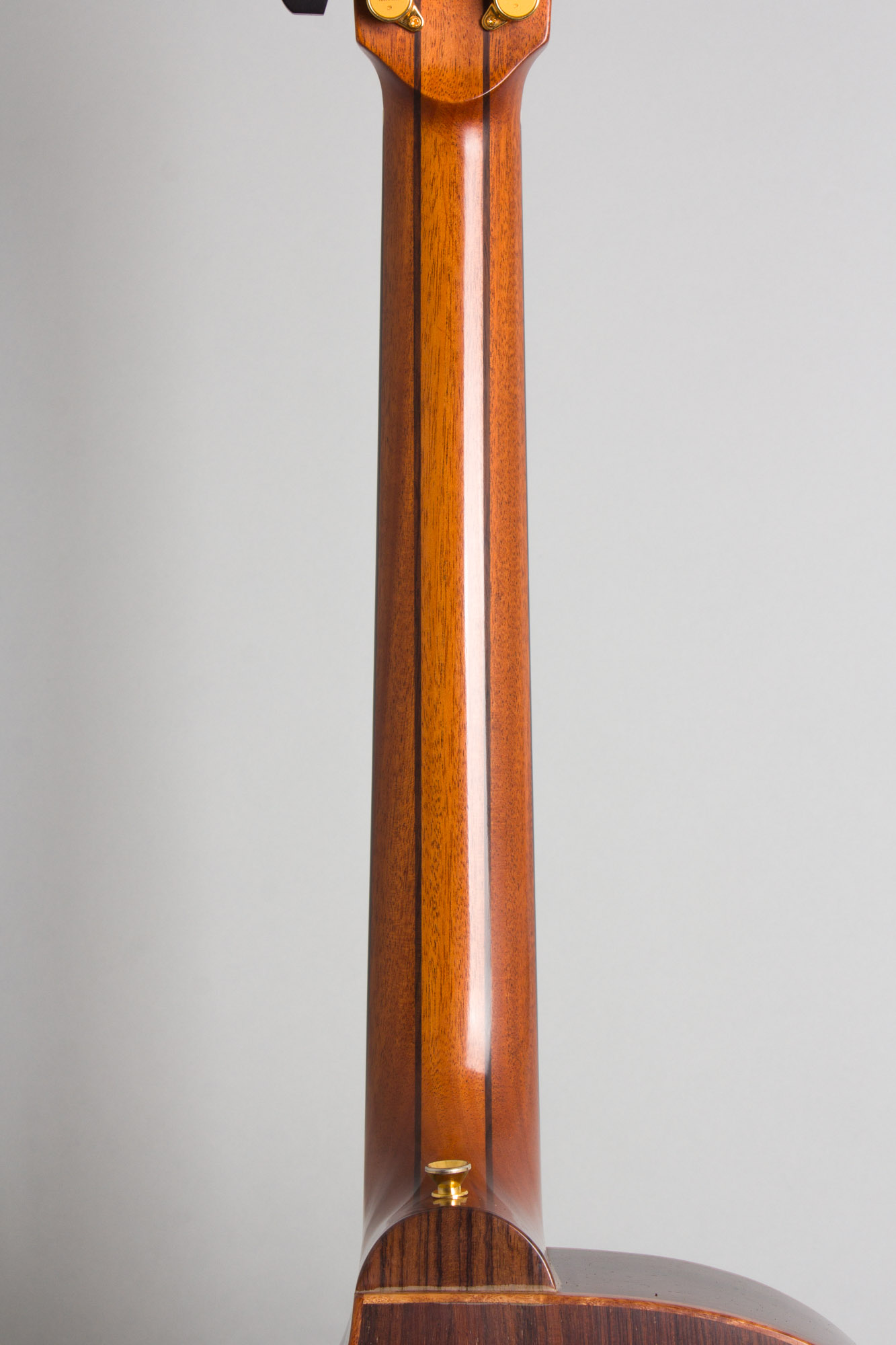 This is a very clean guitar, looking minimally used showing only very light handling marks and very little wear. It is entirely crack free, unmodified but for the addition of a Sunrise magnetic pickup in the soundhole with an end pin jack. There seems to be a small amount of the topmost coat of the finish pulling away from the wood right at the heel; this is purely cosmetic and the neck has never been off this guitar, nor will it need to anytime soon.