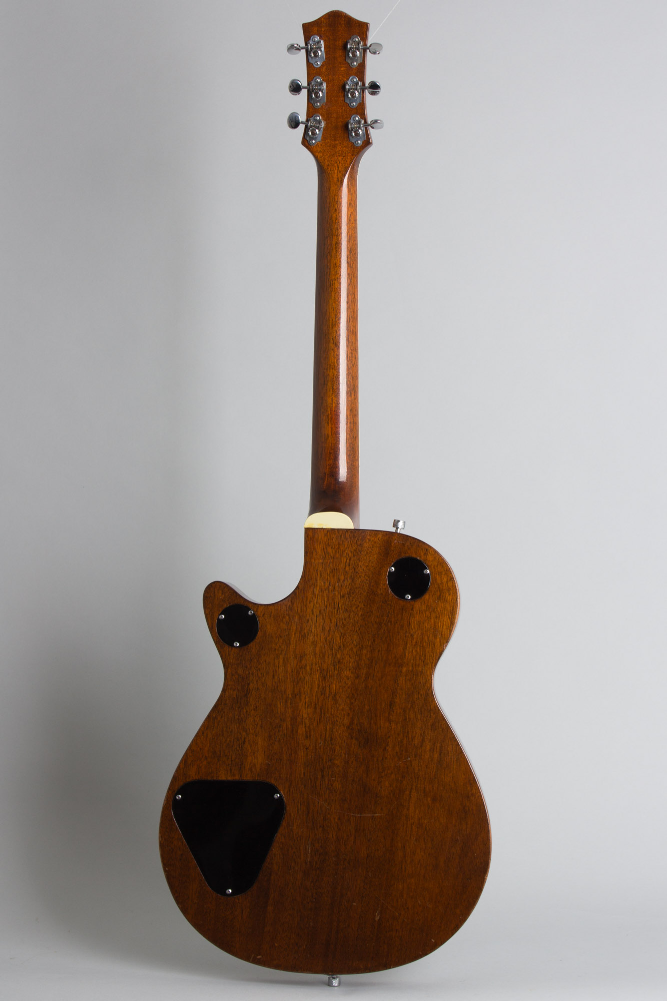 The Gretsch Jet series were introduced on the heels of Gibson's Les Paul in the third quarter of 1953. The Brooklyn company officially described them as solidbodies but they are actually chambered semi-solids, rather lighter than their Gibson competitors. An arched plywood top is mounted over a hollowed-out mahogany body, with some extra blocking installed but plenty of open space inside. The black-topped Duo Jet was the first of what became a series of "Jets" in different finish and trim options.