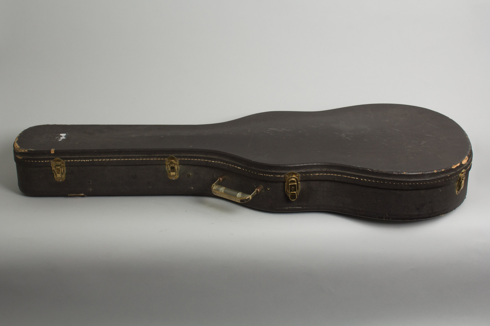 Overall length is 41 3/4 in. (106 cm.), 16 in. (40.6 cm.) wide at lower bout, and 1 3/4 in. (4.4 cm.) in depth, measured at side of rim. Scale length is 24 3/4 in. (629 mm.). Width of nut is 1 11/16 in. (43 mm.).