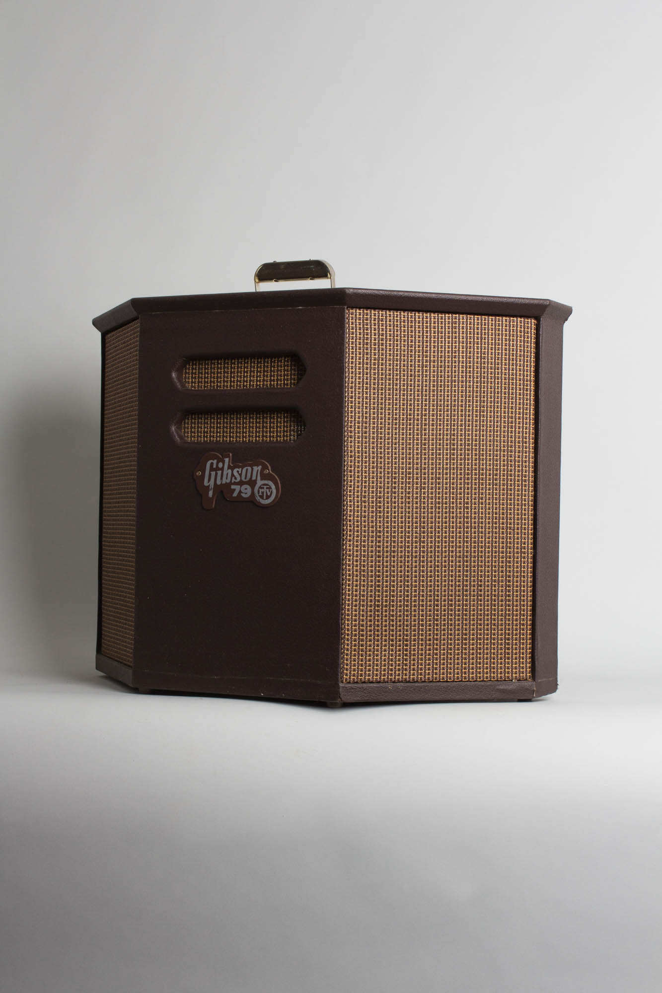 This unusual wedge-shaped stereo amplifier was originally meant as an adjunct to Gibson's heavily promoted stereo guitars, the ES-345TD and ES-355TDSV. After all, if you're going to spring for a guitar with a stereo output, it only makes sense to have an amp to exploit that feature! Not wanting to limit sales of this new baby, Gibson also made the amp fully functional with any standard "mono" electric guitar.