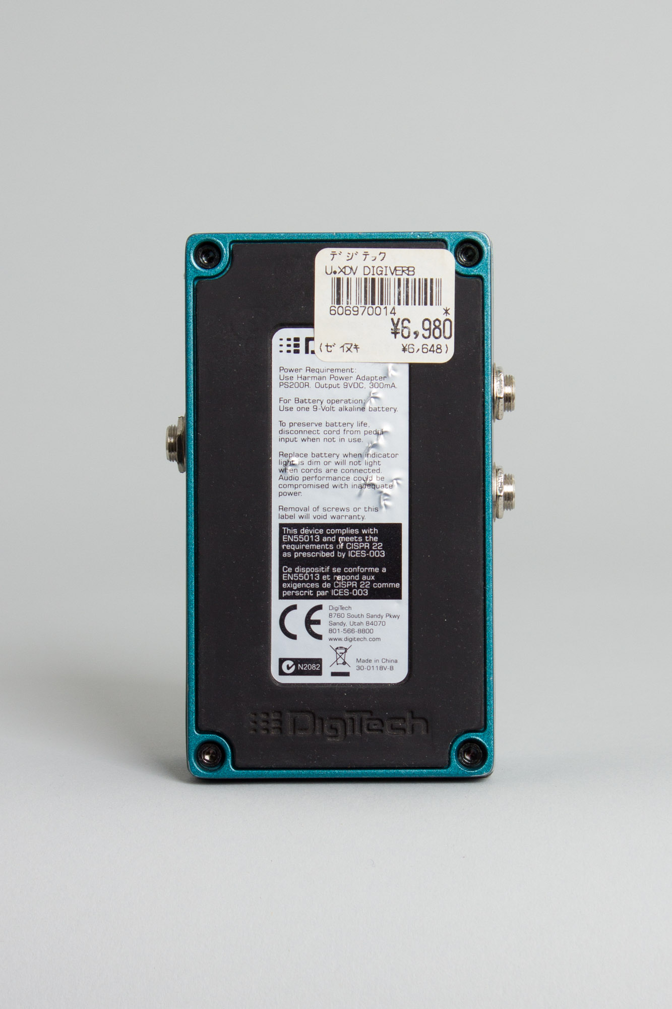 The Digiverb is part of their X-Series, an affordable line of bread and butter effects pedals that were common fixtures at guitar stores globally (this one, at least, bears markings of its sale in Japan). It features 7 different Reverb modes from fairly simple hall Reverbs to some lusher, more complex settings with just three knobs (level, a single knob EQ, and decay time) to tailor the 'verb. The pedal also advertises a cabinet emulation option, no doubt to be used alongside the spring emulation setting to replicate the classic sound of a tube amp reverb circuit.