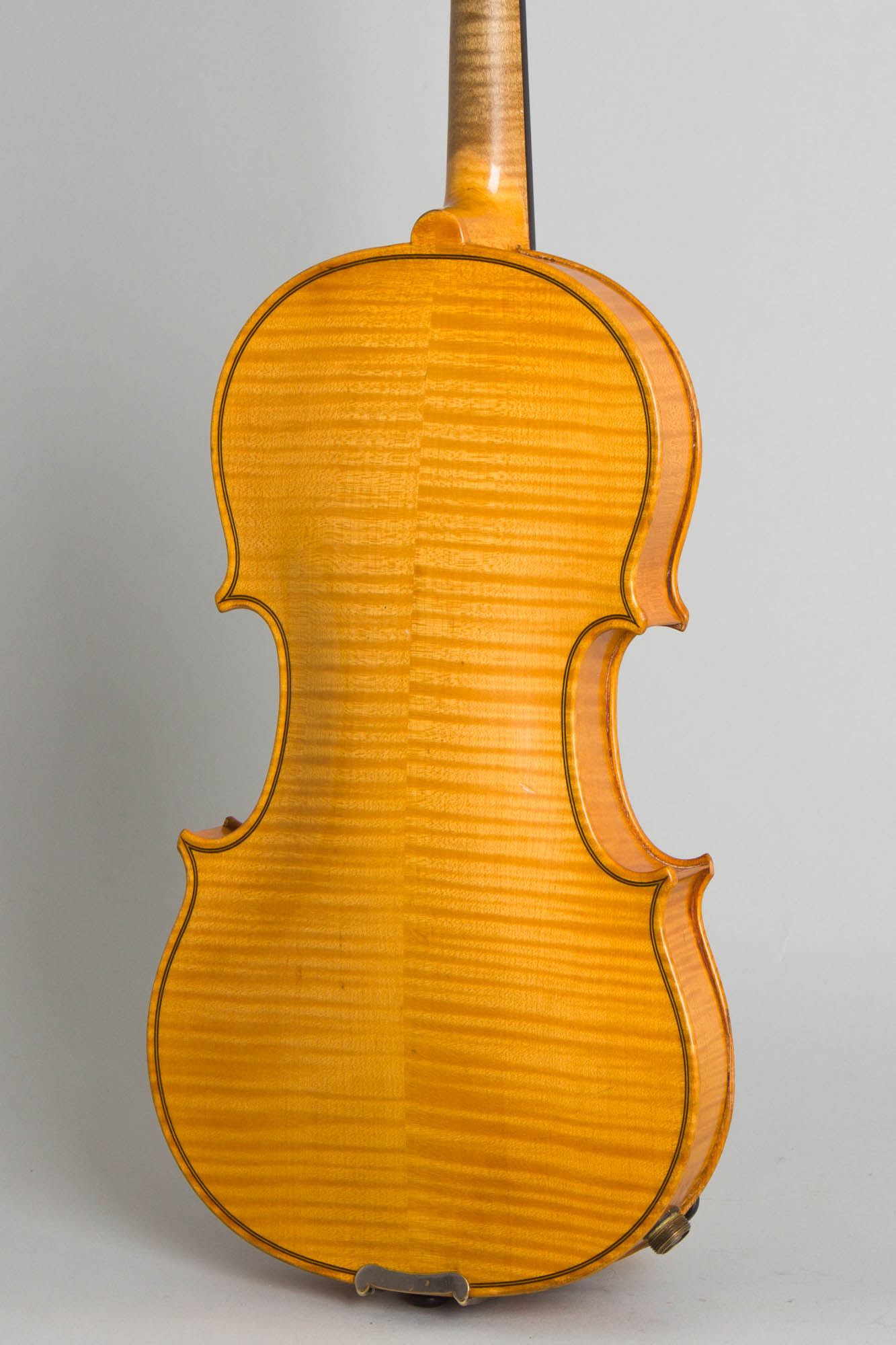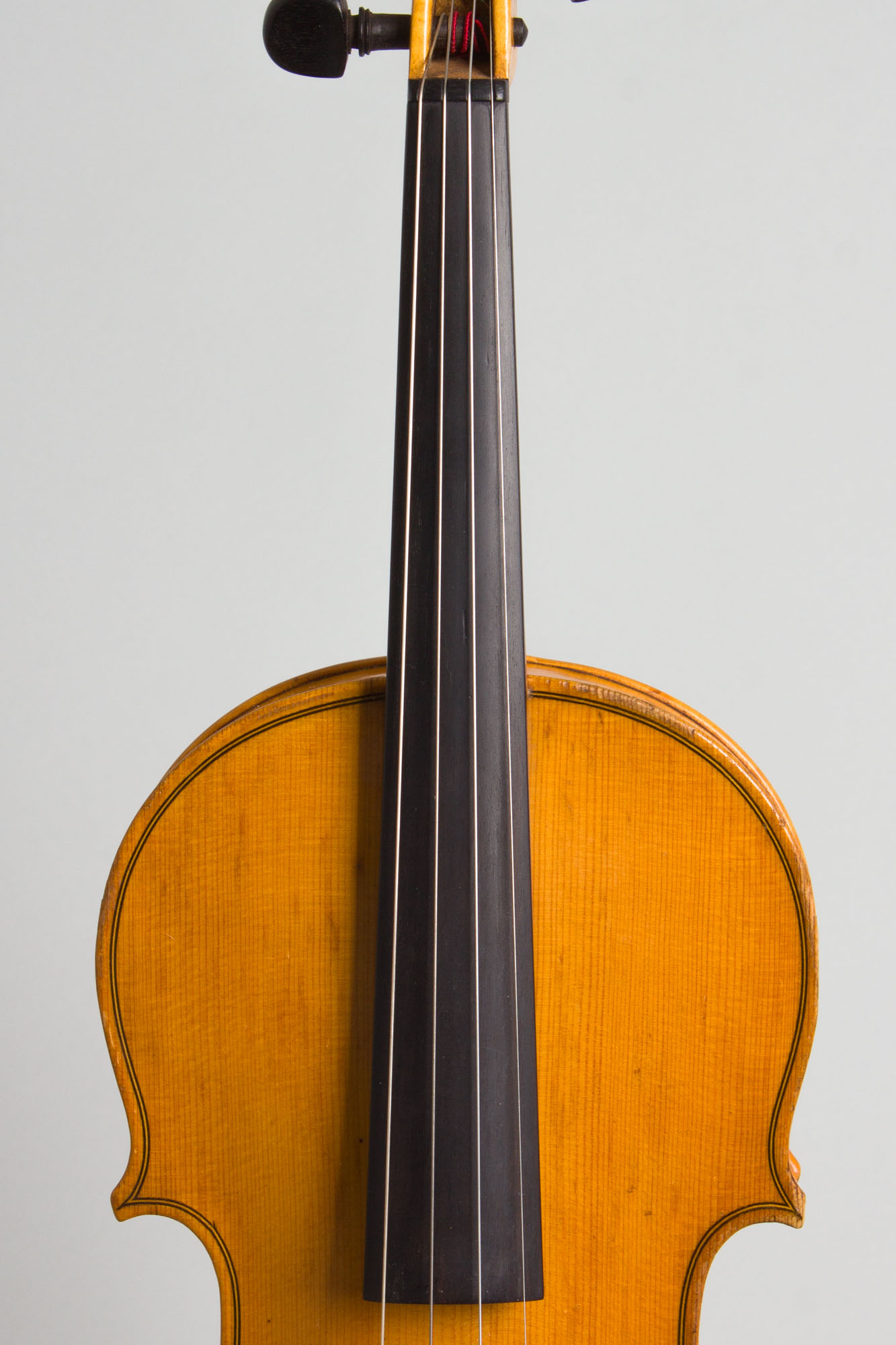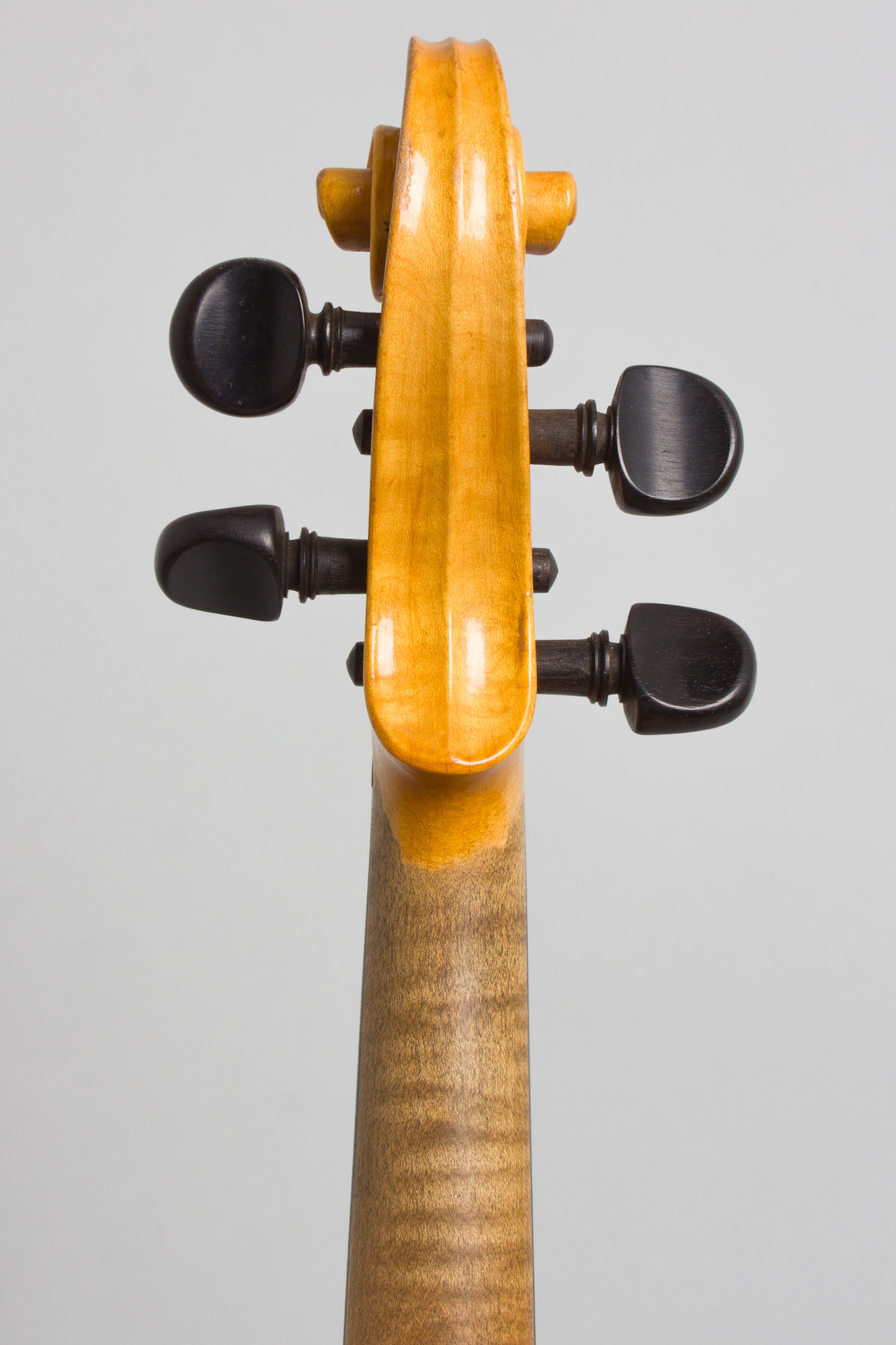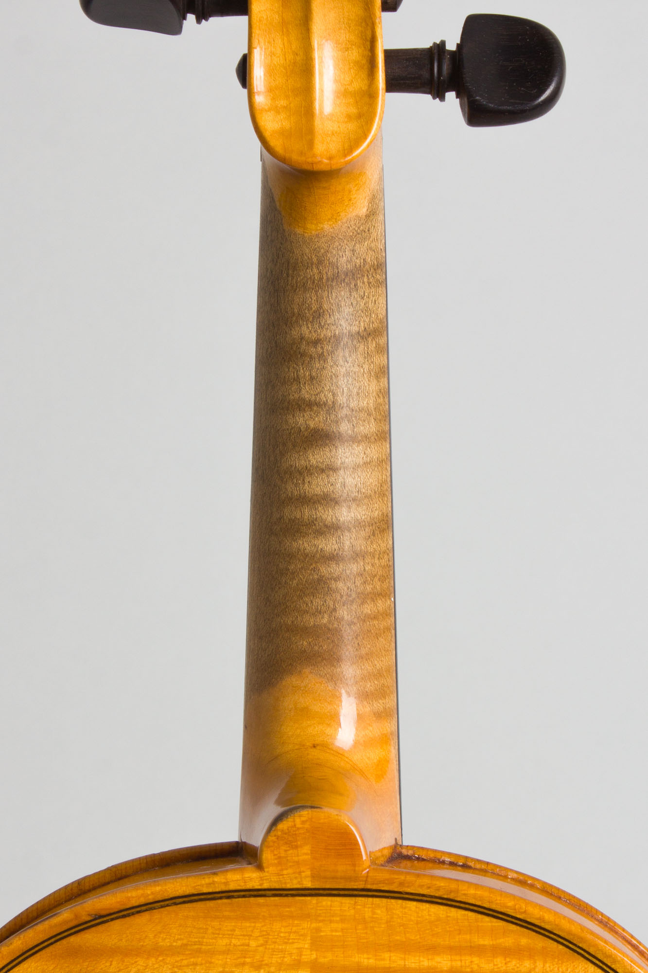 Length of button stop is 14 1/8 in. (35.9 cm.), 8 3/8 in. (21.3 cm.) wide at lower bout, and 1 7/16 in. (3.6 cm.) in depth, measured at rib. Scale length is 12 7/8 in. (327 mm.). Width of nut is 7/8 in. (22 mm.).