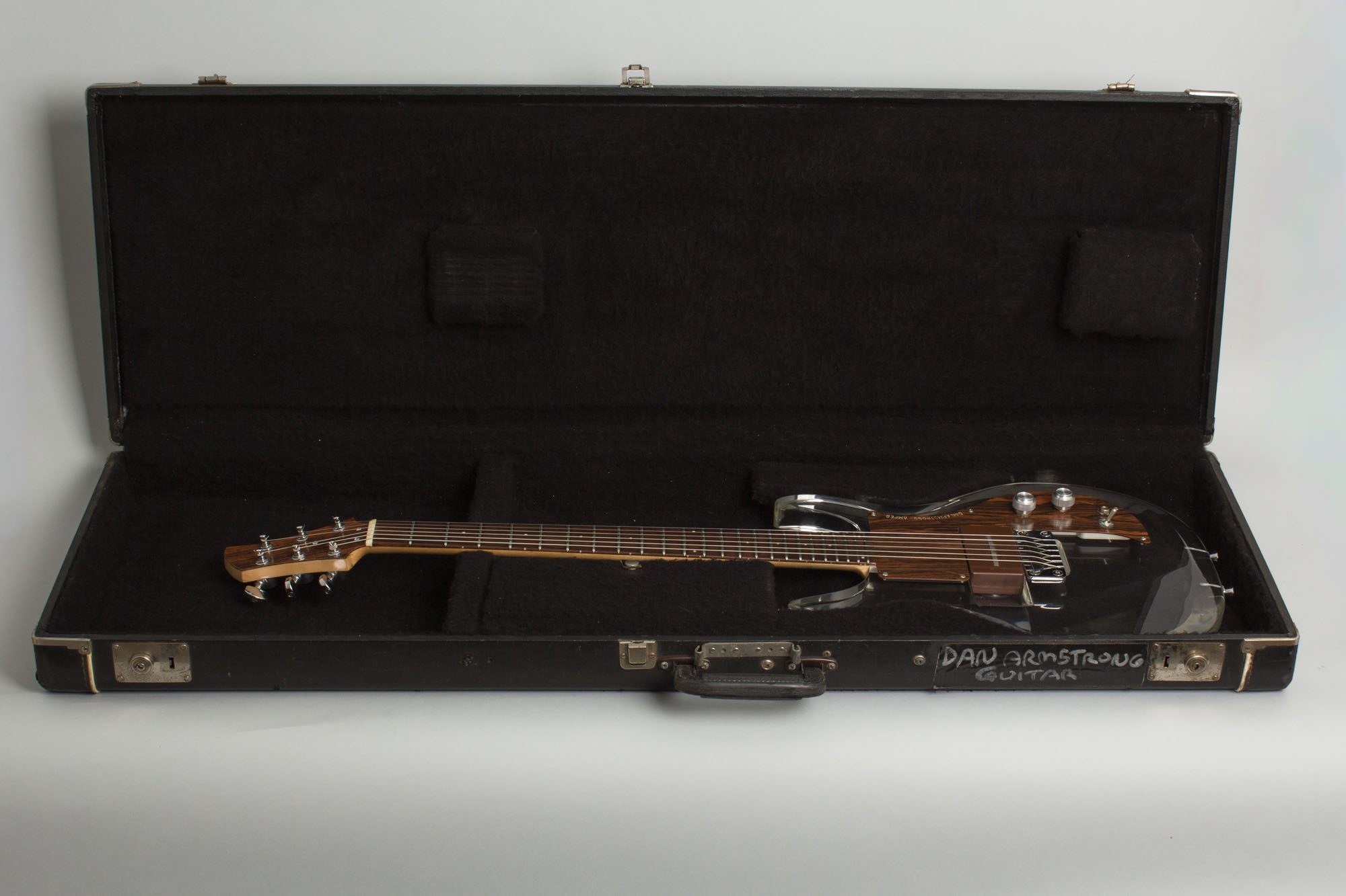 Ampeg Dan Armstrong Model Solid Body Electric Guitar (1970), made in New Jersey, serial # A589D, clear acrylic finish, acrylic body, maple neck with rosewood fingerboard, original black hard shell case.