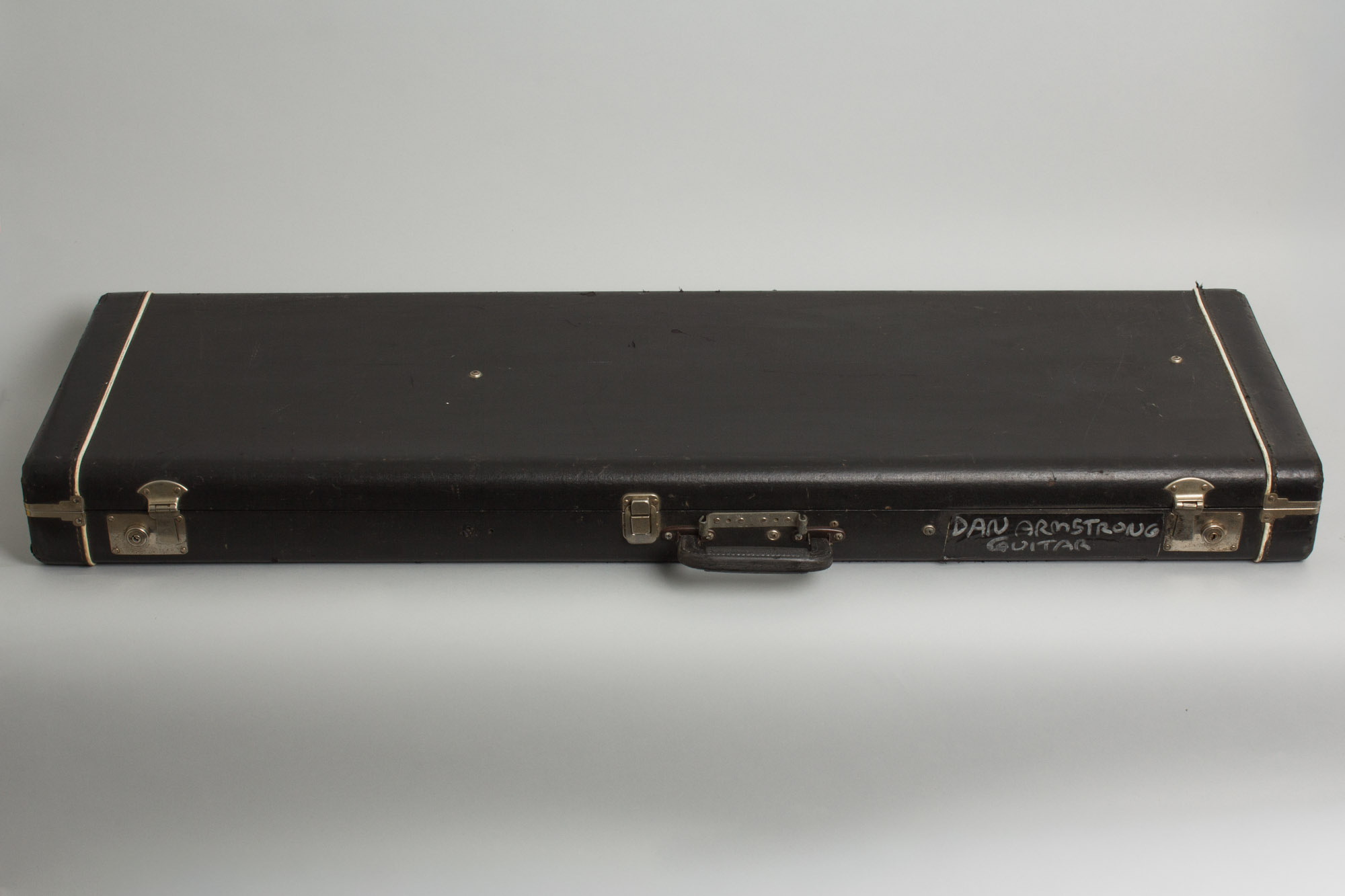 The somewhat fragile Formica pickguard is in perfect shape with no cracks, unlike many! The favorite "RT" pickup is mounted and sounds great, the guitar is a very nice player, more versatile than one might expect with a very snarly tone when pushed. It includes the original "universal size" HSC that also fits the bass with some light wear and "Dan Armstrong guitar" written on in a couple of spots. Overall Excellent Condition.