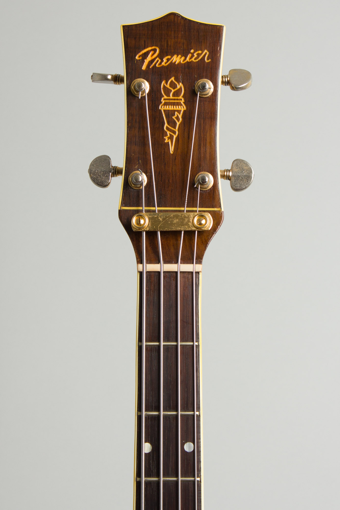 Despite their local origins we rarely see early Premier solidbodies, especially the basses. Production totals seem to have been low and it is not sure exactly where they were actually made. Some claim they were a product of United Guitar in Jersey City, while others remember them being built in the old Strad-O-line workshop around 17th street and 7th avenue in Manhattan, then run by Sorkin. Wherever it was birthed, this is a nice example of an early "scroll bass", pretty much the only one with a still-playable neck we have ever encountered.