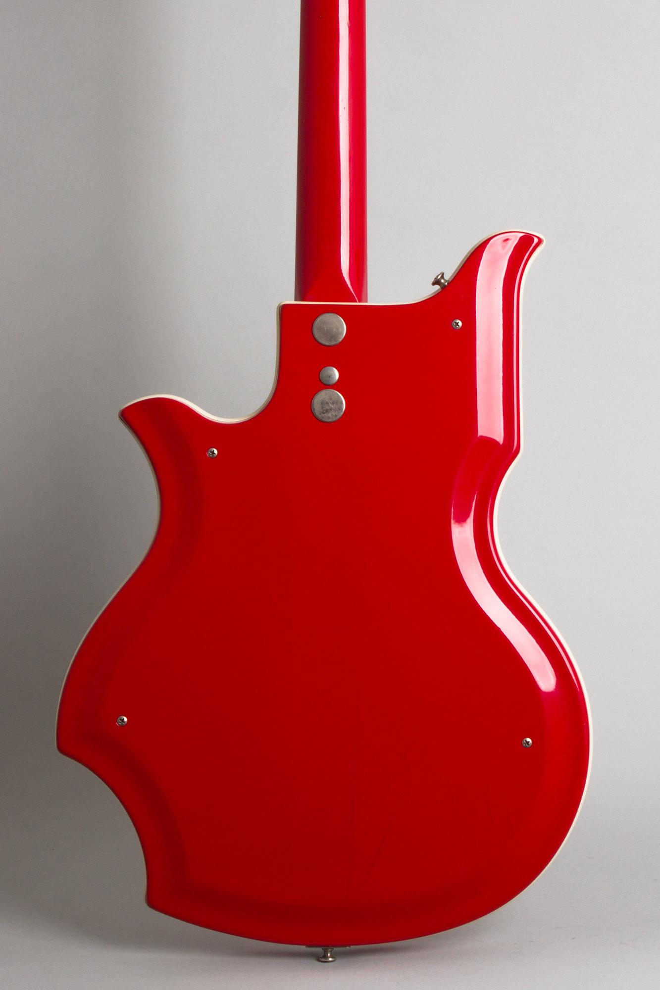 National Glenwood 95 Model Solid Body Electric Guitar (1963), made in Chicago, serial # T-88201, Vermillion Red finish, molded Res-O-Glas body, maple neck with rosewood fingerboard, original grey hard shell case.