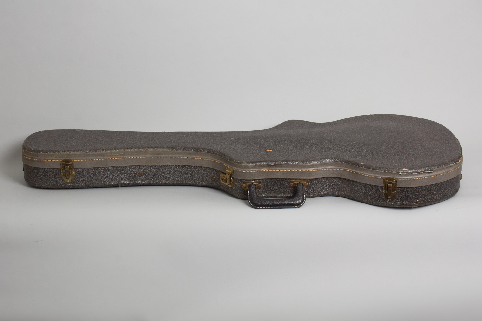 All hardware is original and complete. As is typical the stenciled pickup covers have some loss from picking, mostly on the treble side edge. The neck has been tweaked with a heat press treatment and is as straight as these ever get, and the original frets have been lightly crowned. This is a very playable guitar (a claim not all 1960s Valco products can muster!) quite the best we have had with a great chunky sound. While generally considered primarily a collector's guitar, the "Vermillion" Glenwood 95 is absolutely one of the coolest of all 1960s six-string creations, for show or go! Includes the even rarer shaped original case, which was built by the same supplier as period Gretsch cases. Overall Very Good + Condition.