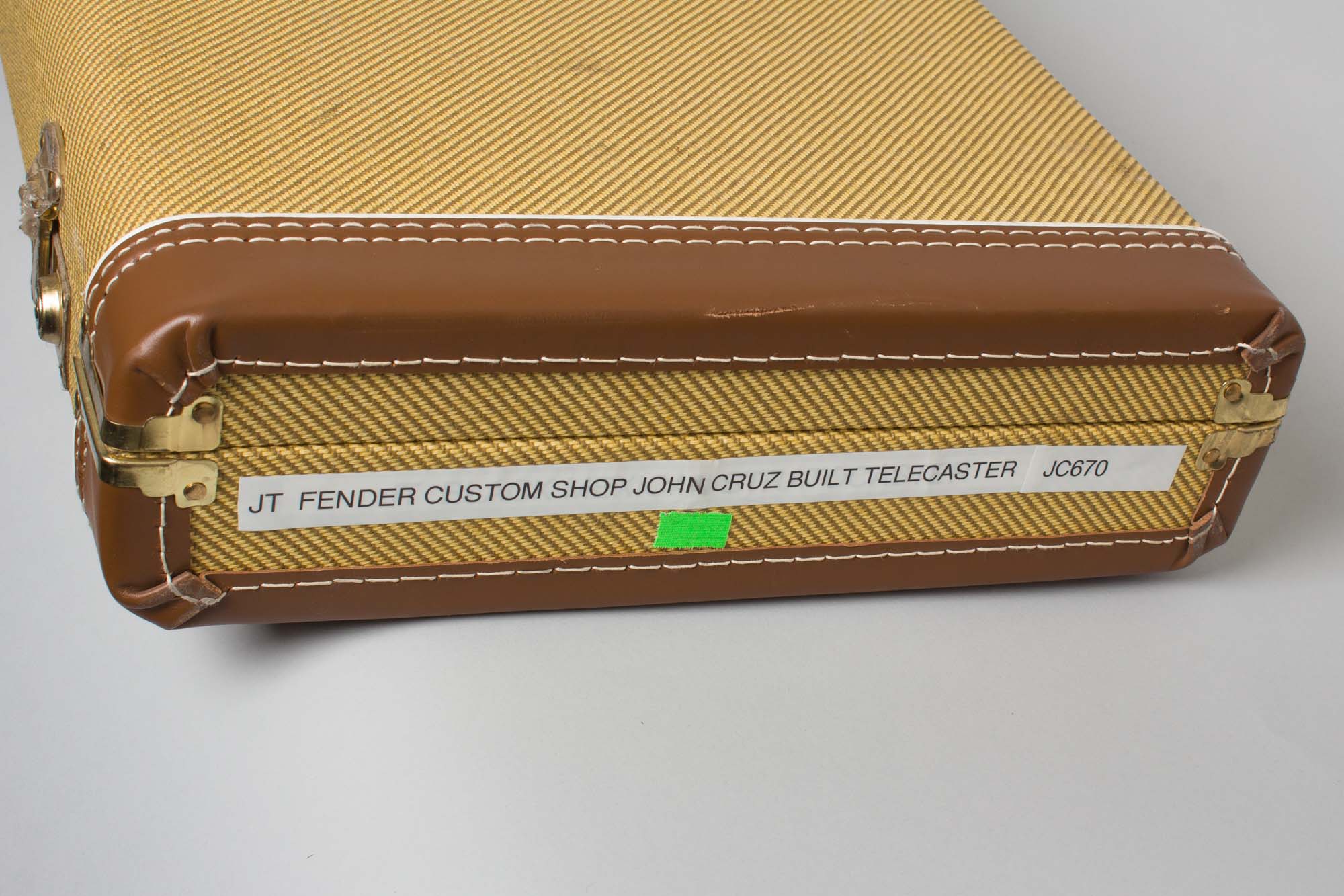 Fender Telecaster Custom Shop Masterbuilt Relic by John Cruz Owned by Jeff Tweedy of Wilco Model Solid Body Electric Guitar, c. 2007, made in Corona, CA, serial # JC670, Blonde lacquer finish, ash body, maple neck with rosewood fingerboard, original tweed hard shell case.