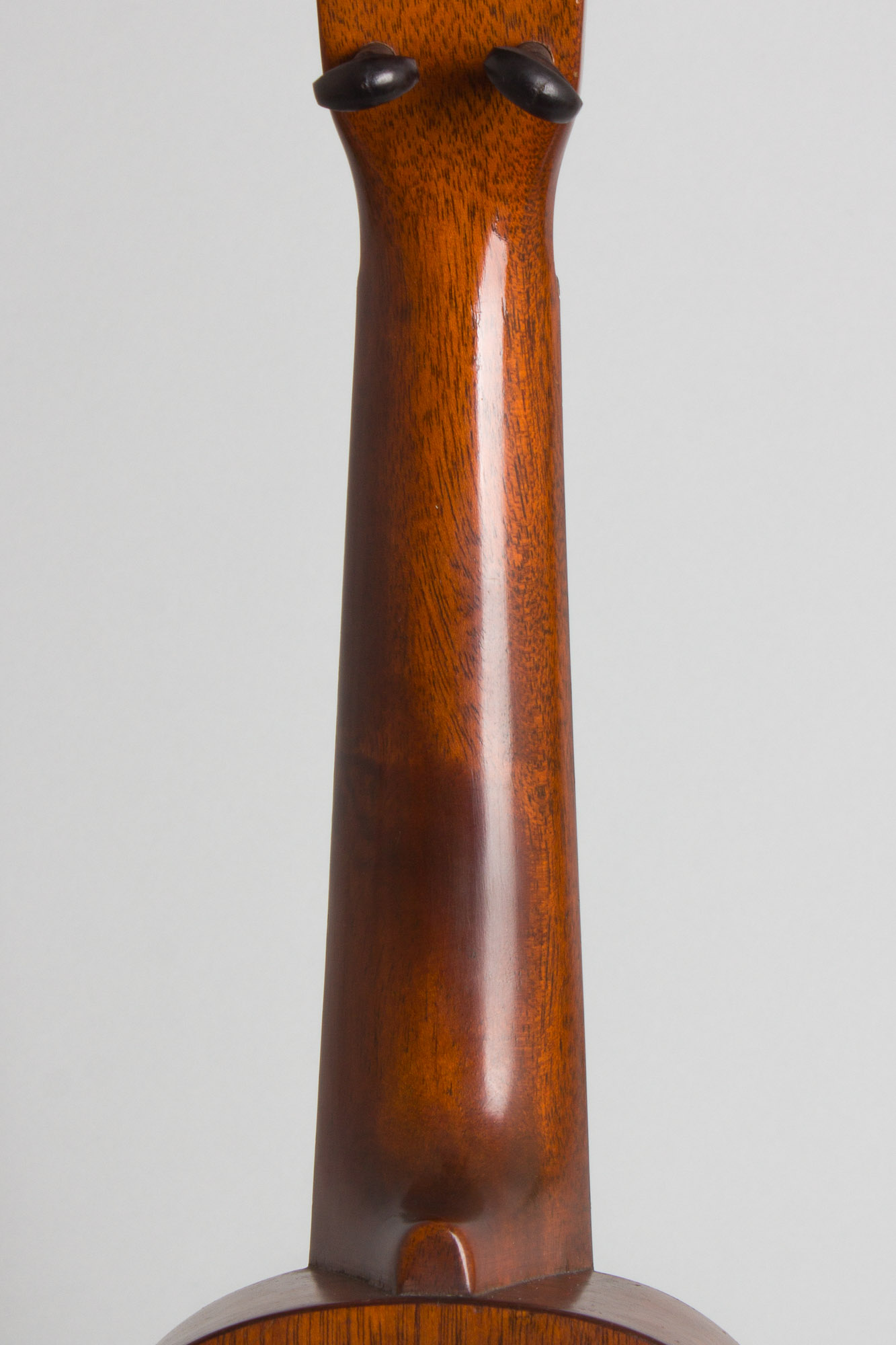 There are a couple of odd grain anomalies to the wood used for the neck, a mark at the lower end of the heel looks almost like a crack but is actually under the undisturbed original finish. The fingerboard has some odd grain striations as well; it appears at the height of the ukulele boom Martin was rushing these out as fast as they could.