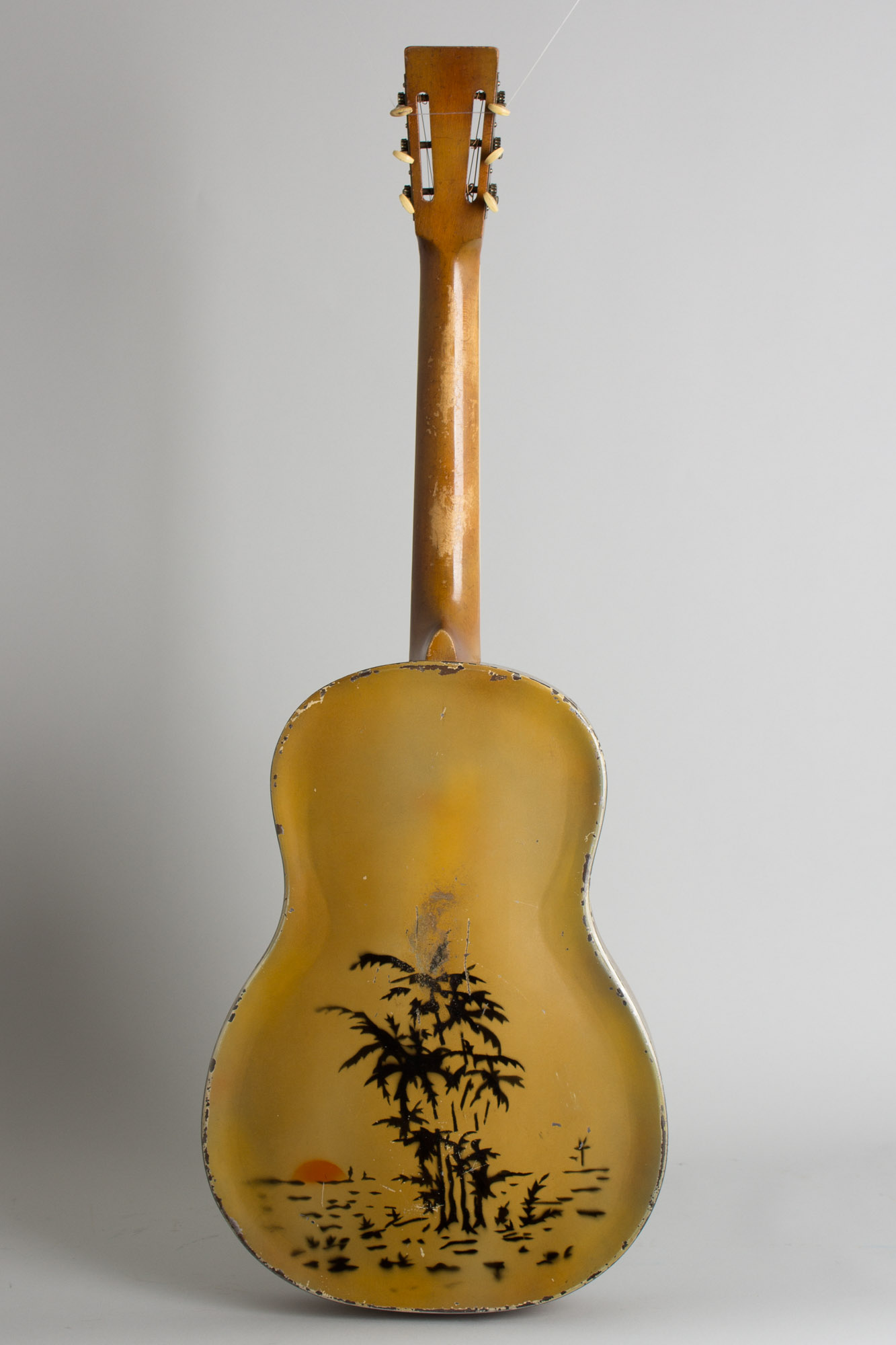National Triolian Model Resophonic Guitar (1931), made in Los Angeles, California, serial # 1143P, Polychrome enamel with stenciling finish, steel body, basswood neck, black tolex hard shell case.