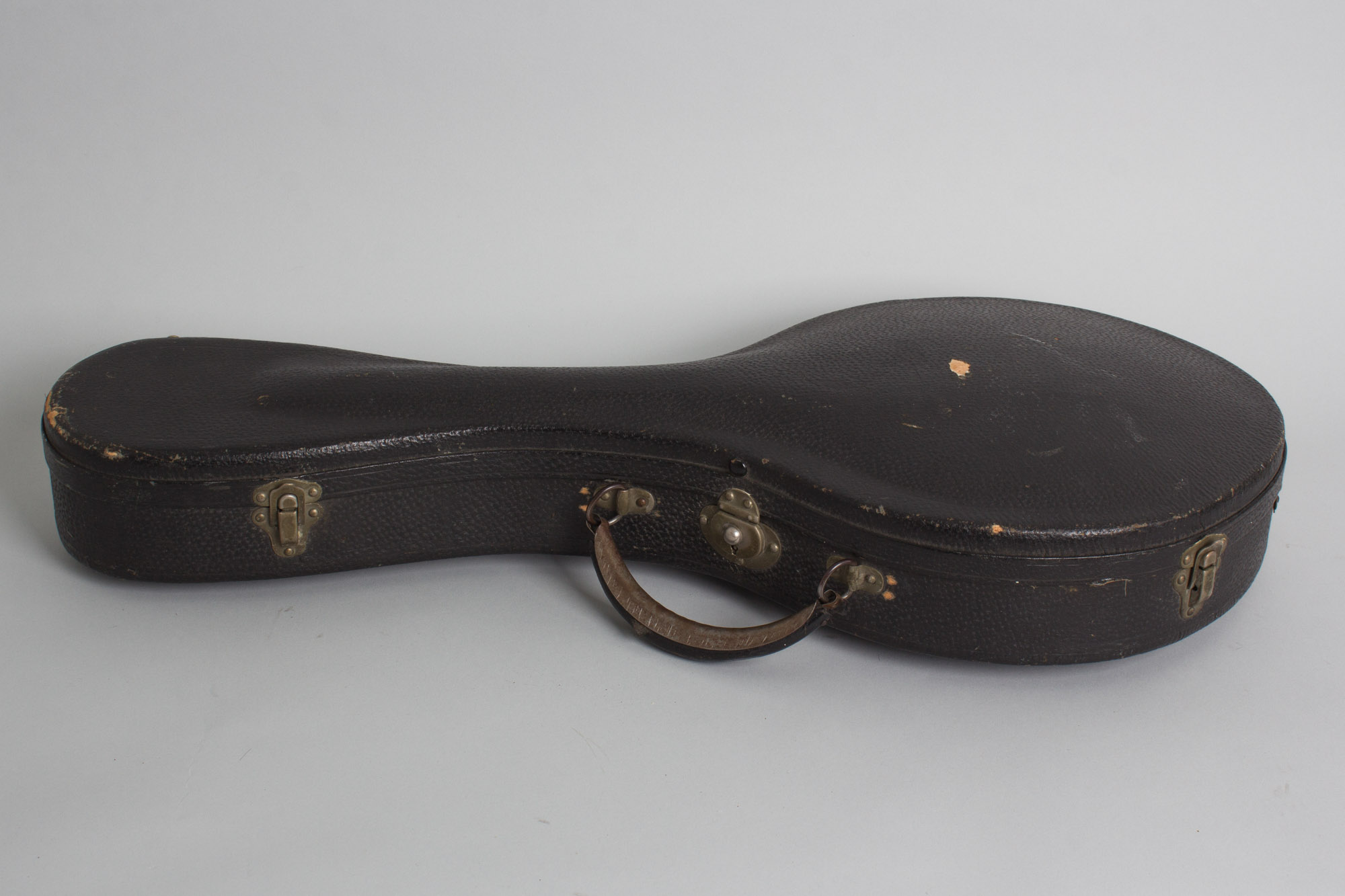 Gibson Style A Model Carved Top Mandolin (1920), made in Kalamazoo, Michigan, serial # 58513, Sheraton brown top, dark stained back and sides finish, birch body, spruce top, mahogany neck with ebony fingerboard, original black hard shell case.