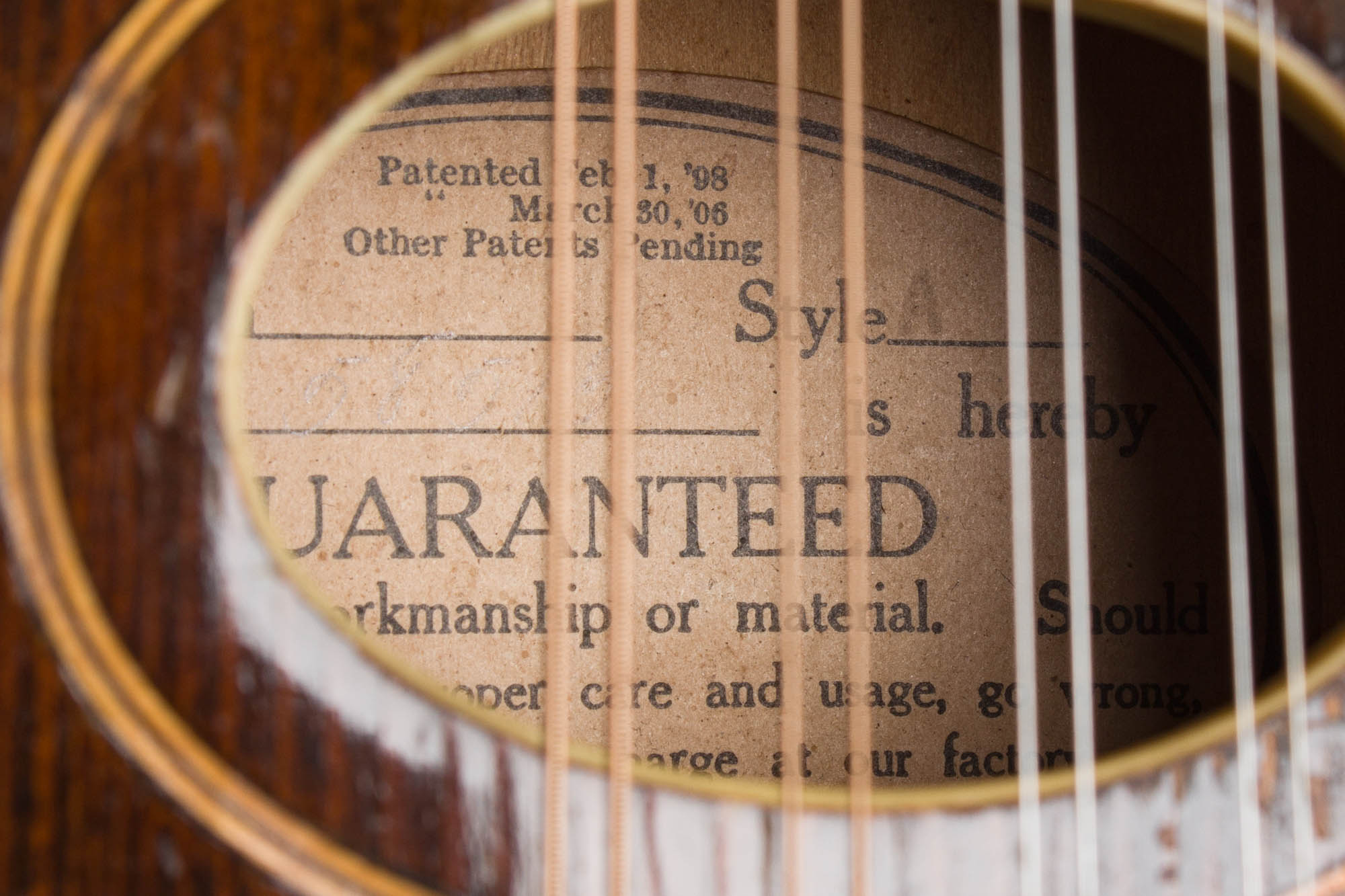The Style A was the company's base-line carved-top mandolin, still with all the sound quality of "the Gibson" (as it was advertised at the time) without much in the way of decoration beyond a bound top and 3-ply soundhole ring. The "browntop" mandolins of the late 'teens and early 1920's may not be the prettiest of the old "paddlehead" Gibsons but they are often the best sounding. This one is a solid centennial survivor, a very playable mandolin with a very low, comfortable action and powerful, ringing tone. It remains 105 years on an enduring testament to the exceptional work of the original Kalamazoo, Michigan Gibson factory.