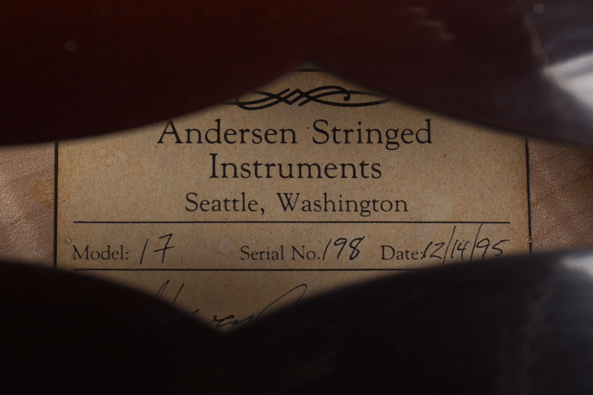 Steve Andersen Model 17 Made for and used by Bill Frisell Model Arch Top Hollow Body Electric Guitar (1995), made in Seattle, WA, serial # 198, sunburst top, natural back and sides finish, maple back, sides and neck, spruce top, ebony fingerboard, original black gig bag case.