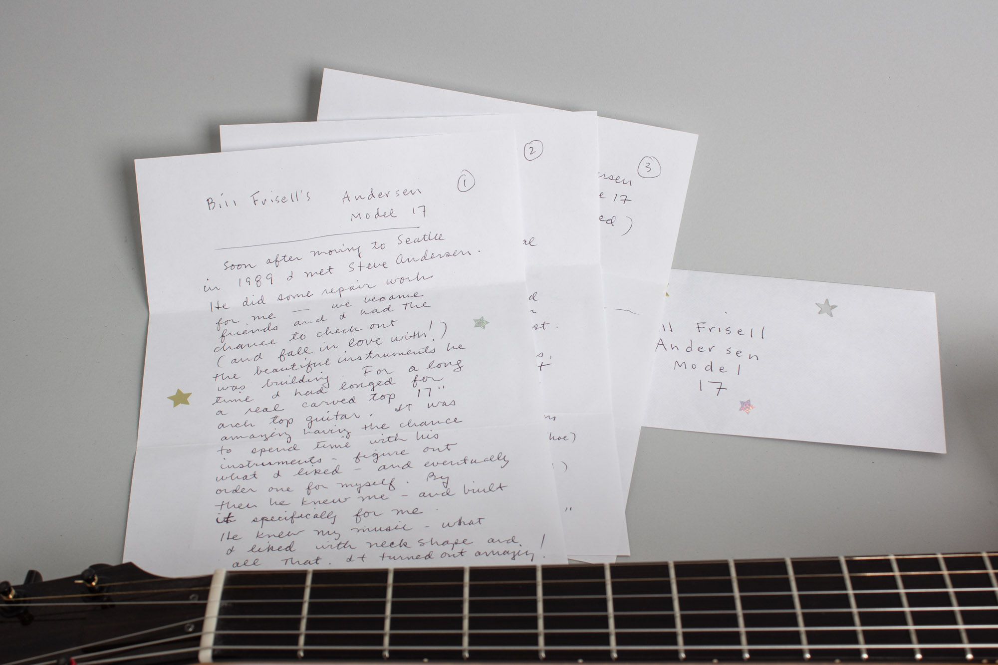This lovely Steve Andersen carved top guitar was built just about 30 years ago specifically for Bill Frisell, who played it extensively for some years. It comes directly from Bill with a truly lovely letter of provenance detailing his history with the guitar. This reads in part: