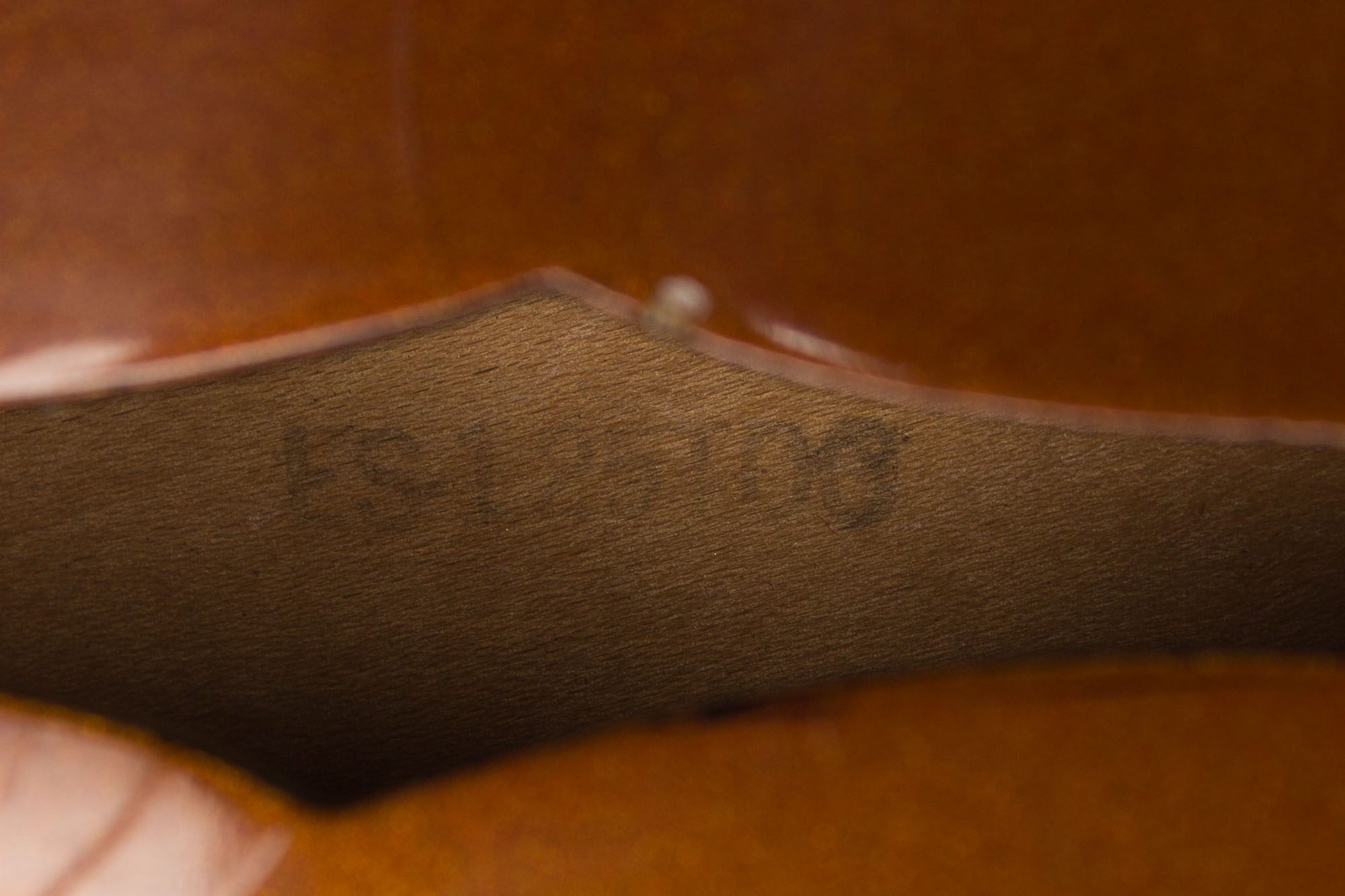 There are no visible repairs except a little bit of fill visible at the base of heel, which is fully solid. Apart from the added Bigsby the hardware is all original and in good shape; that vibrato tailpiece is period, or perhaps somewhat later but not a modern issue. There is a filled hole on the upper side from a strap button added above the heel; a correct Gibson strap button is mounted on the bottom of the heel.