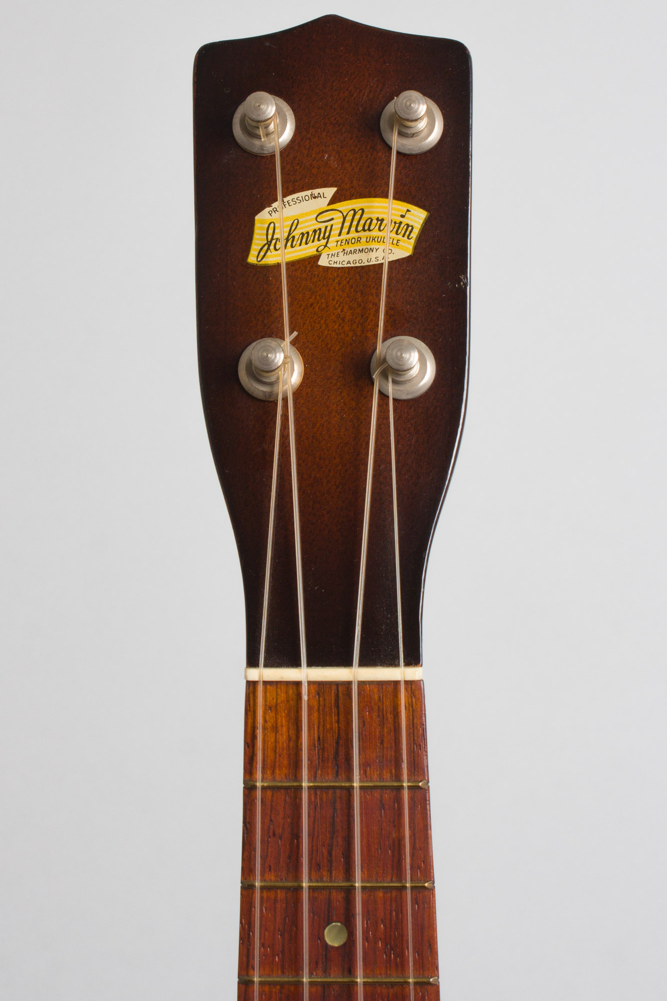 Harmony Johnny Marvin Professional Model Tenor Ukulele (1940s), made in Chicago, sunburst lacquer finish, mahogany top, back and sides, rosewood fretboard, black tolex hard shell case.