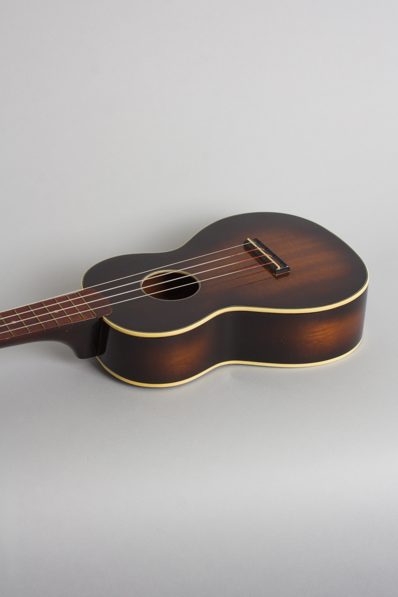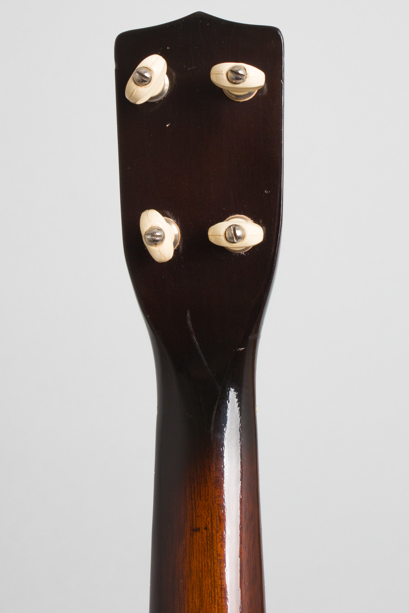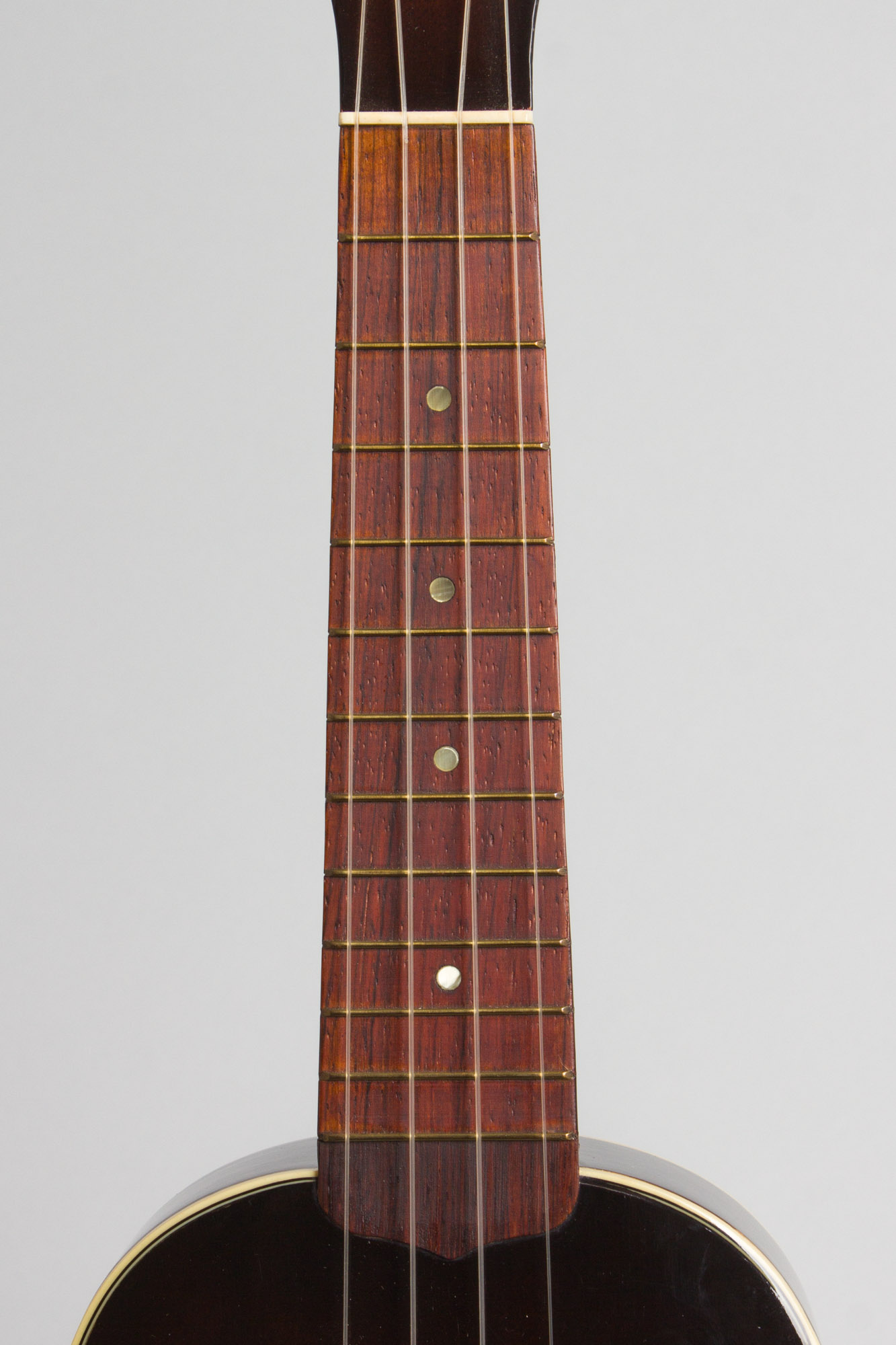 While Harmony is most remembered in the ukulele realm for the thousands of beginner-grade instruments they built from the 1920s through the 1960s, the company also produced some higher quality ukes. The Johnny Marvin Professional Uke was originally one of the finest, and a nicely made instrument compared to much of the company's output. This example dates to the 1940s when the model (and Johnny's career) were on their last legs but is still about the best ukulele harmony offered.