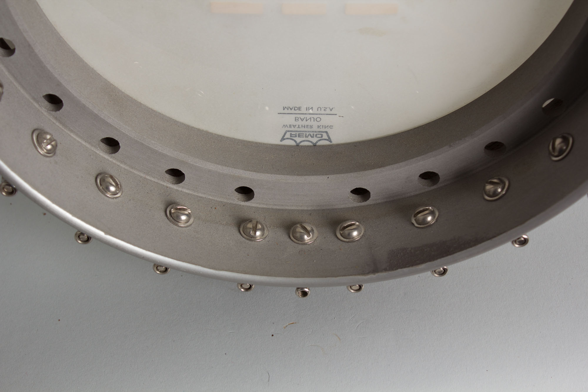 Overall this banjo remains in fine condition, looking played but not too heavily used over the last nearly 35 years. The metal surfaces show some light wear, as does the neck finish. The head does have sone "played in dirt" on the surface in the usual places. This banjo plays very well and resides in a later Gold Tone gig bag that is a bit scruffy but functional. Overall Excellent Condition.